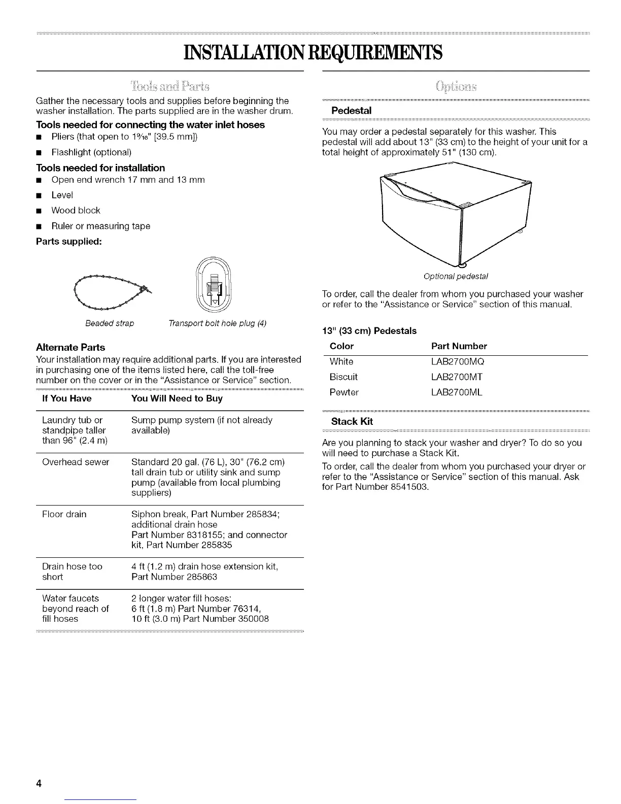 pedestal will add about 13" (33 cm) to the height of your unit for a