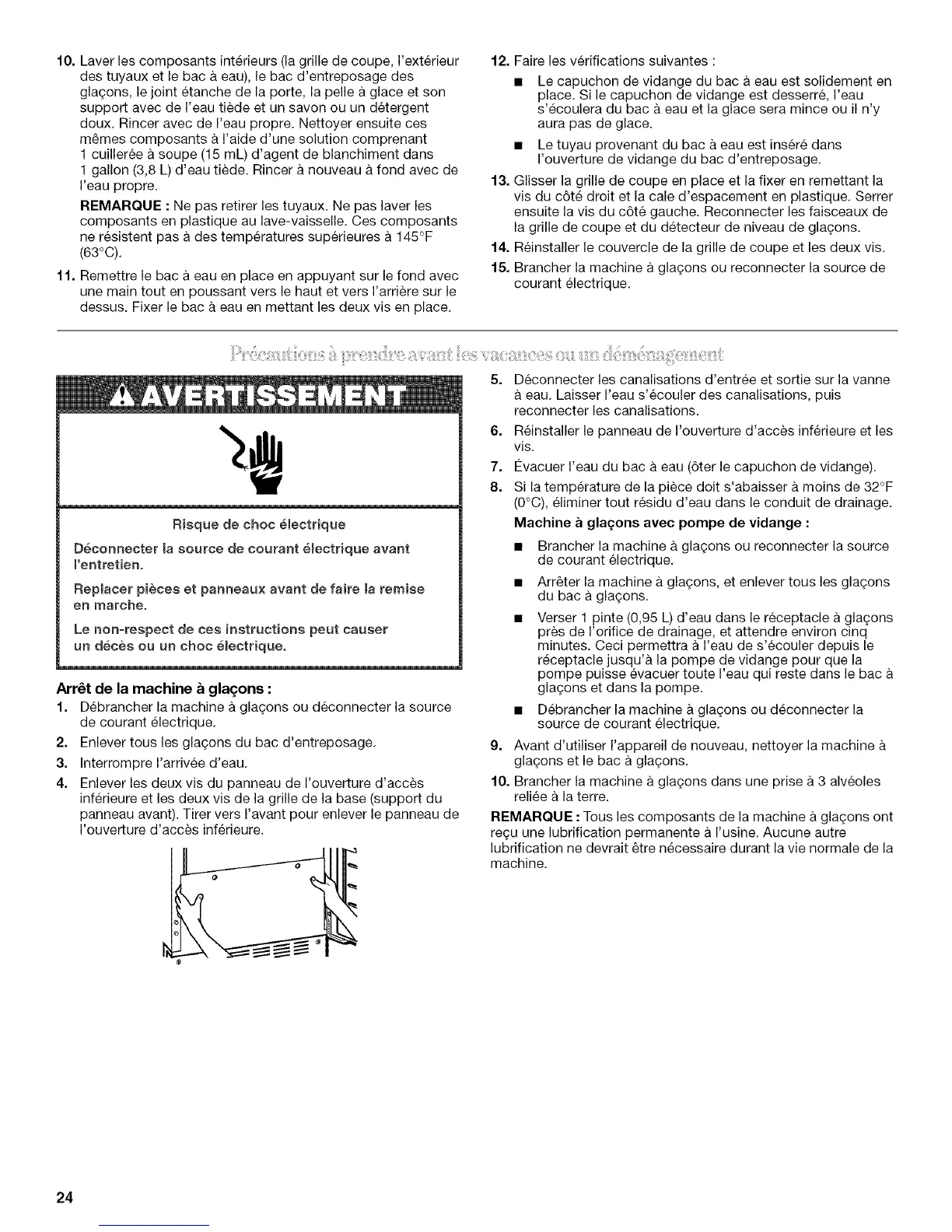 • Arr_ter la machine a glagons, et enlever tousles gla(_ons
