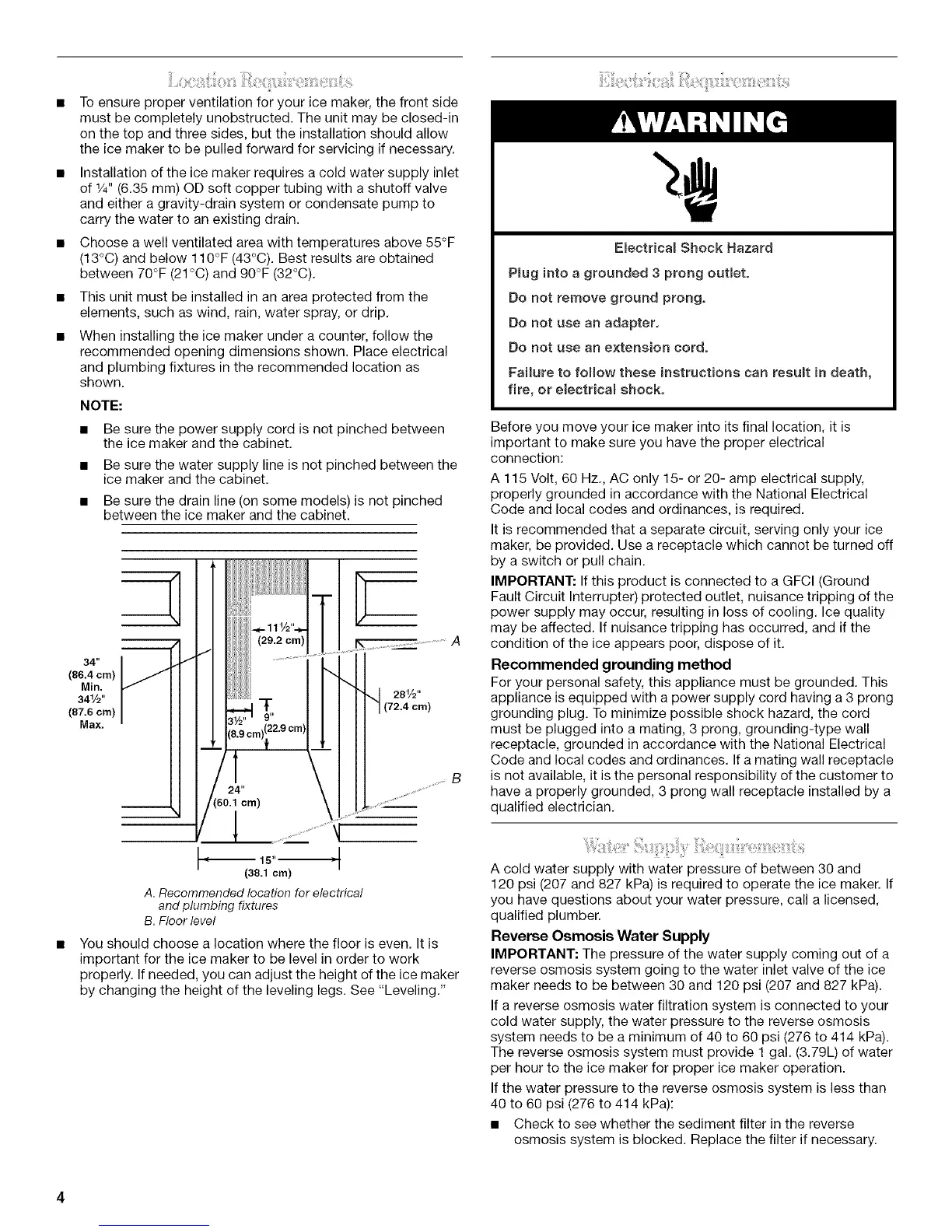 120 psi (207 and 827 kPa) is required to operate the ice maker. If