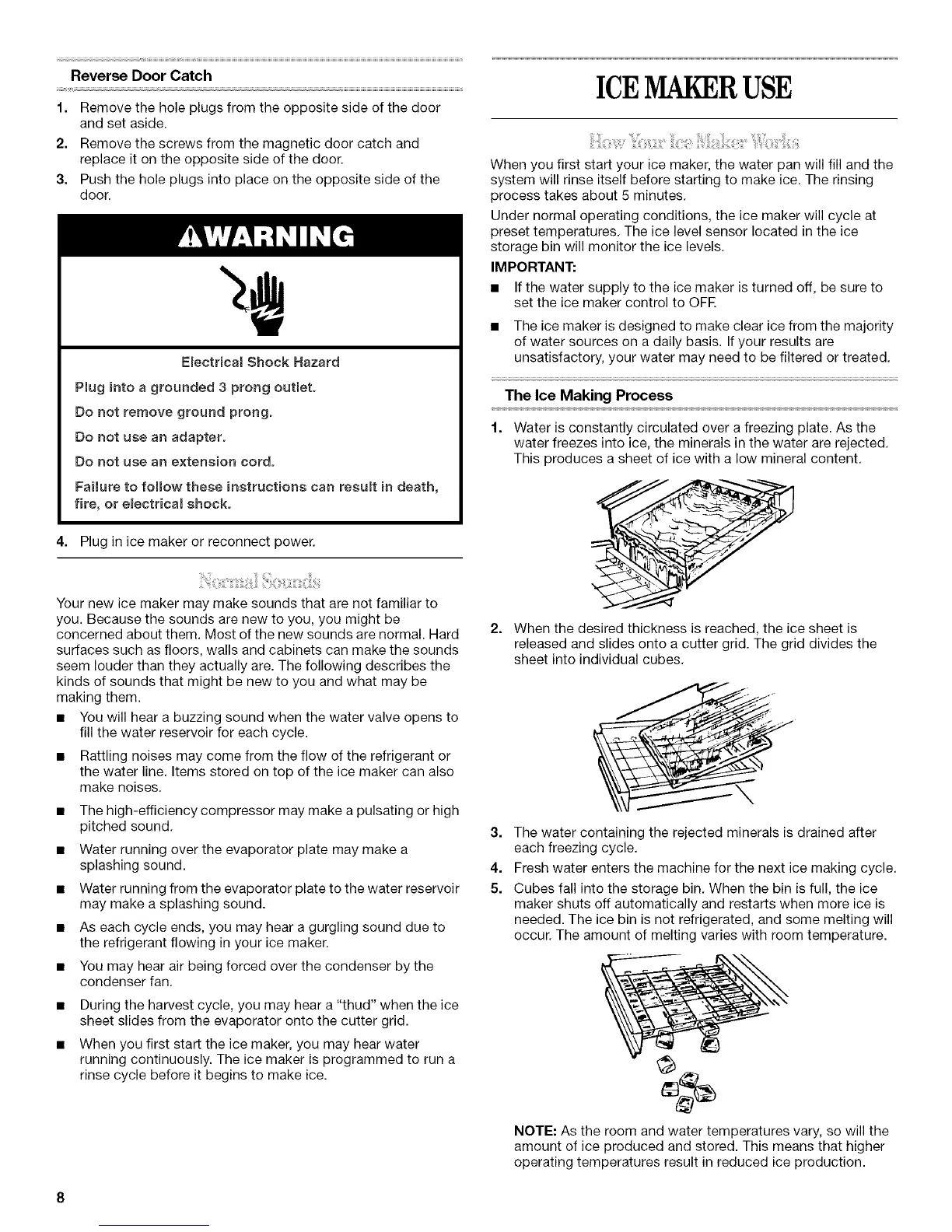• The ice maker is designed to make clear ice from the majority