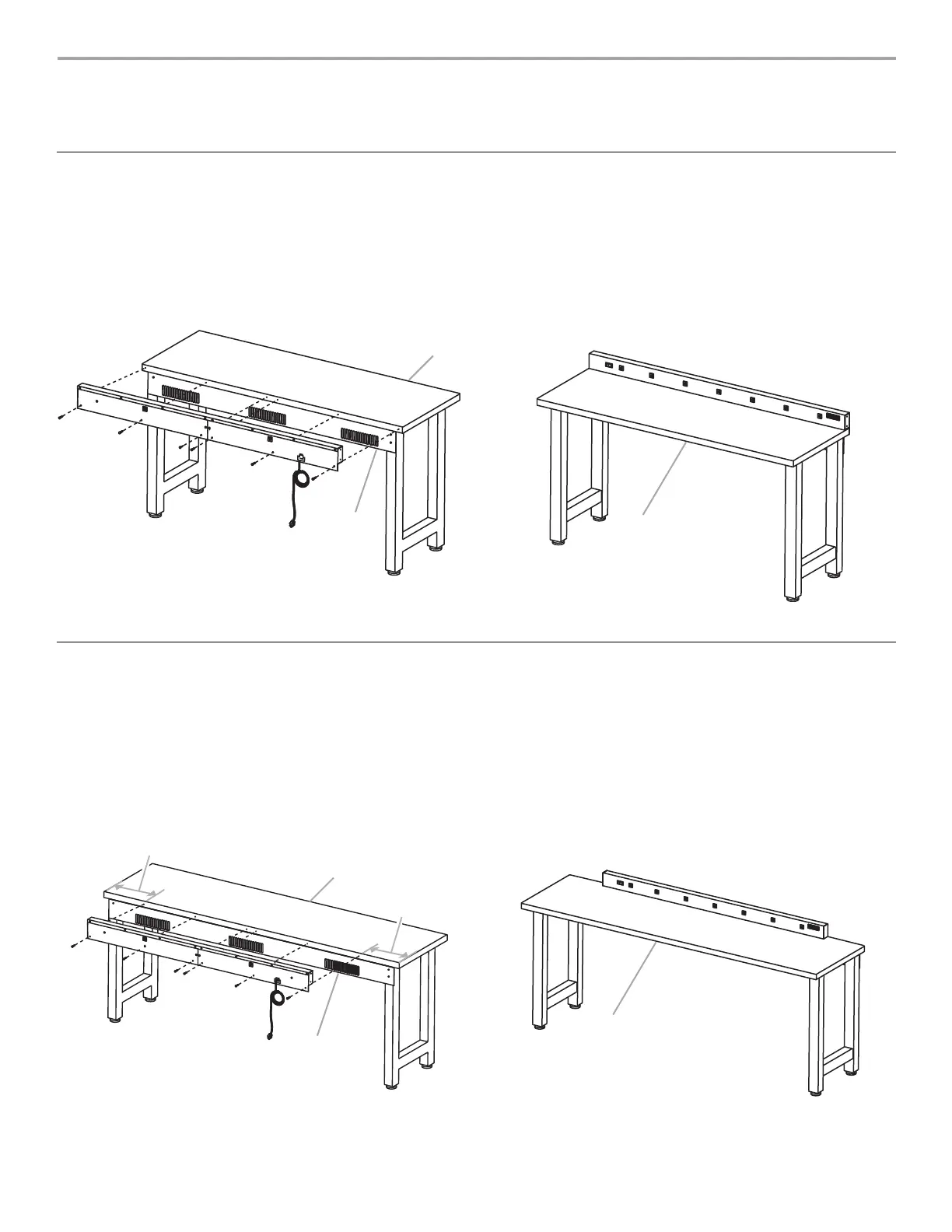 The workbench power strip can be installed on either the 6 ft (1.8 m) or the 8 ft (2.4 m) workbench. Before installing the power strip, verify the