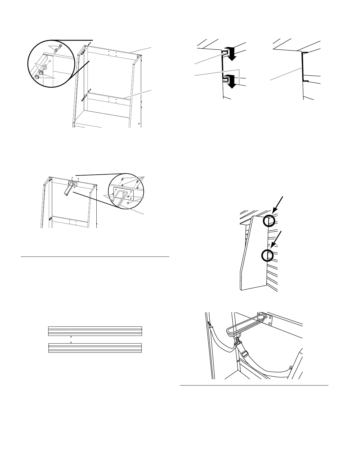 8. Sujete cada correa al panel lateral y al anillo en D del divisor de