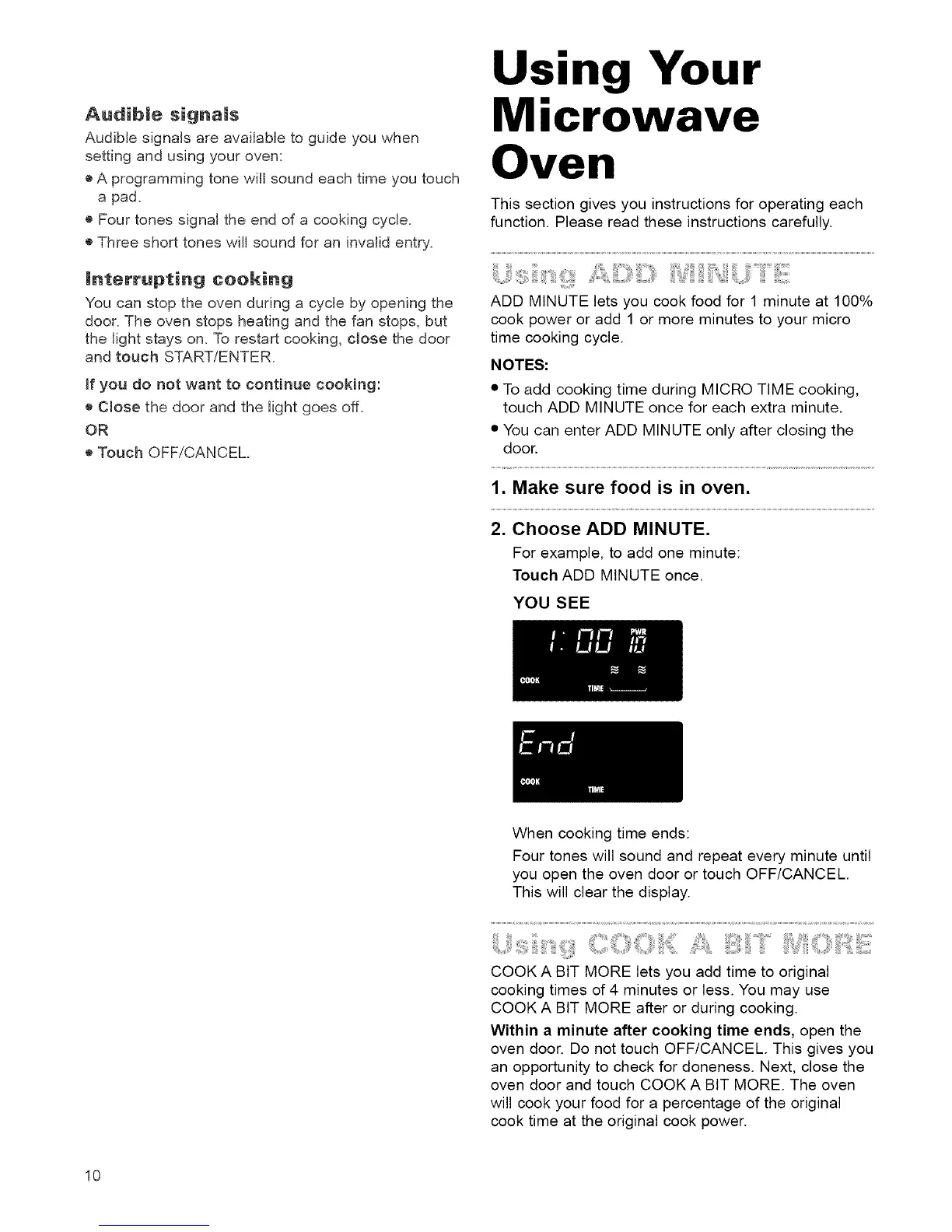 ADD MINUTE lets you cook food for 1 minute at 100%