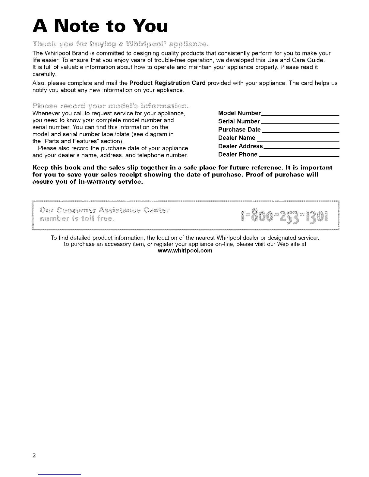 Also, please complete and mail the Product Registration Card provided with your appliance. The card helps us