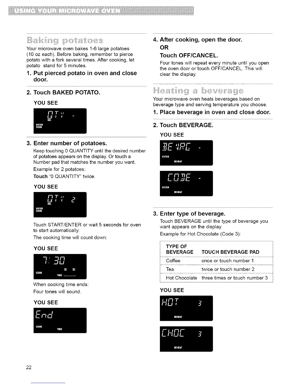 Your microwave oven bakes 1-6 large potatoes
