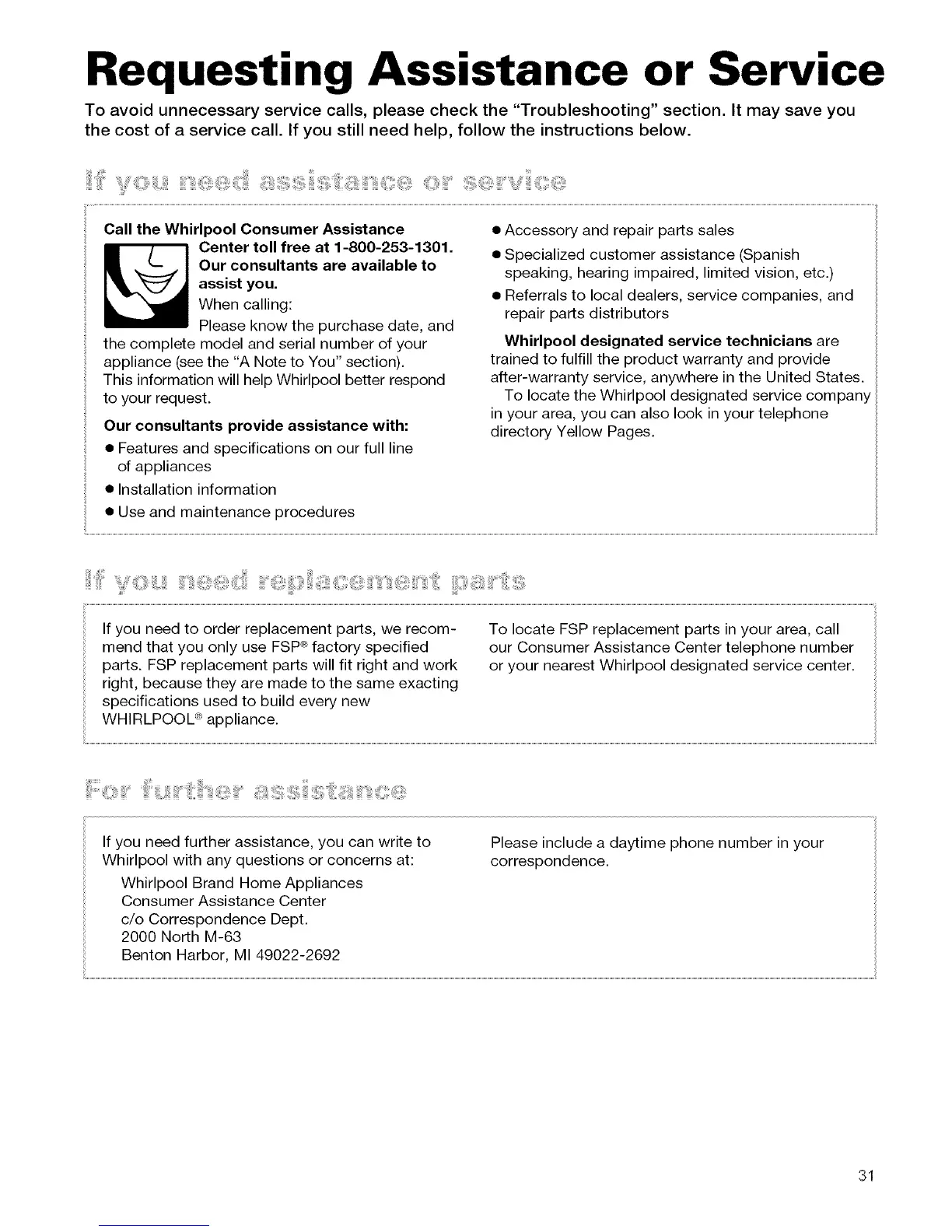 Call the Whirlpool Consumer Assistance