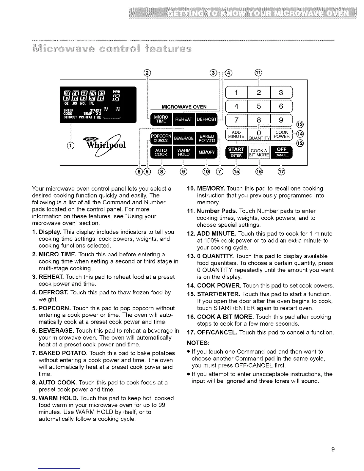 9. WARM HOLD. Touch this pad to keep hot, cooked
