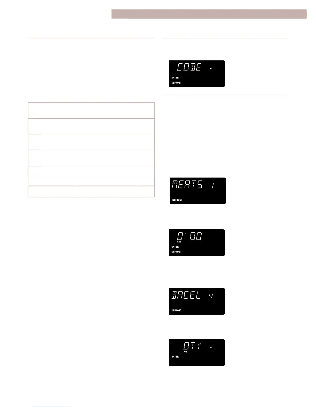 oven, the “Defrost code chart” earlier in this