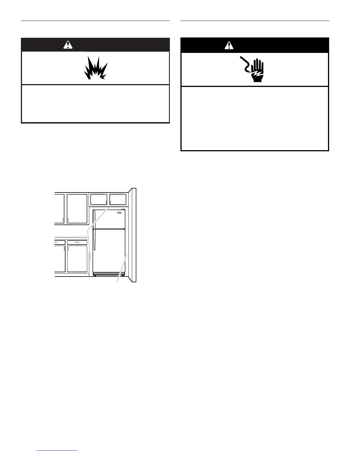 refrigerator next to a fixed wall, leave 2" (5.08 cm) minimum on the