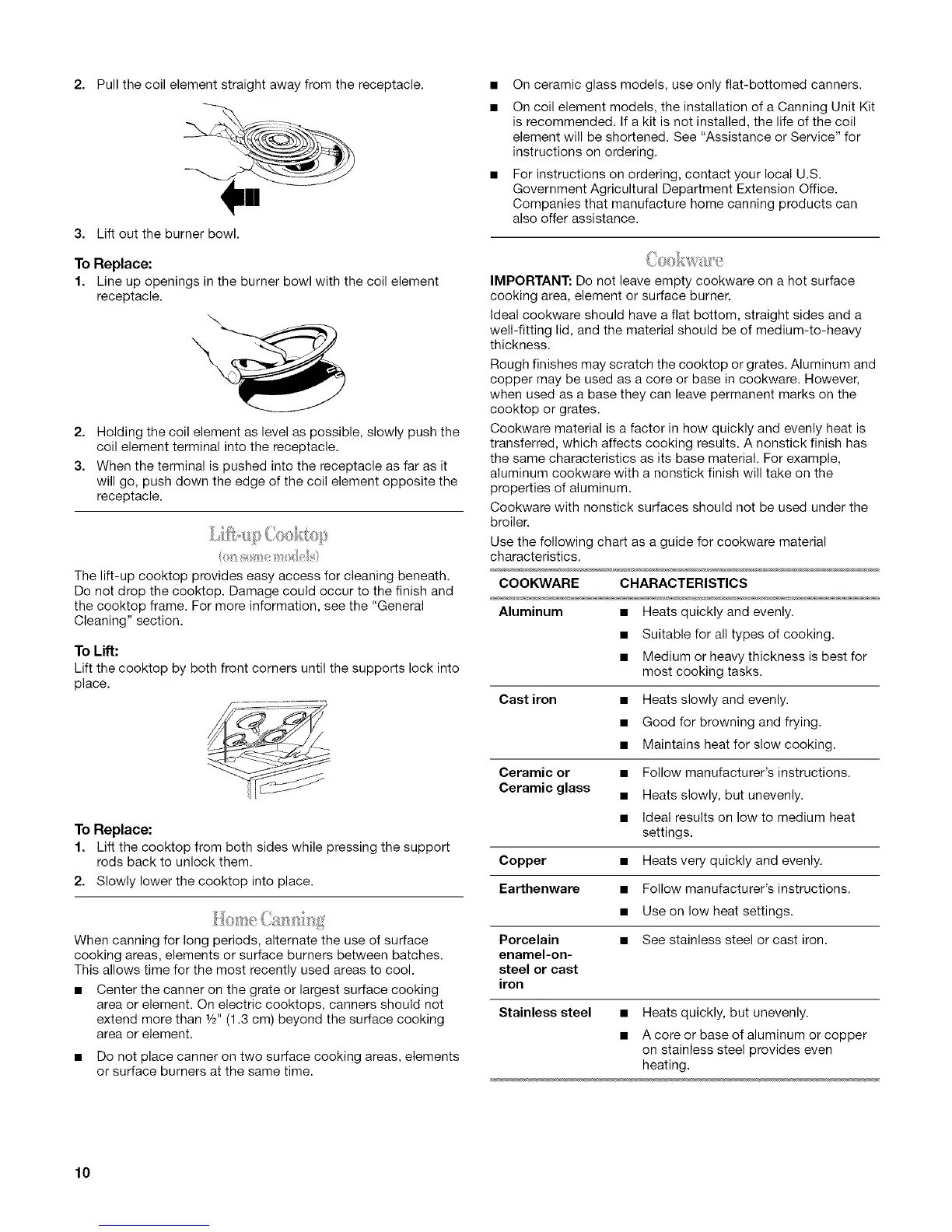• On ceramic glass models, use only flat-bottomed canners.