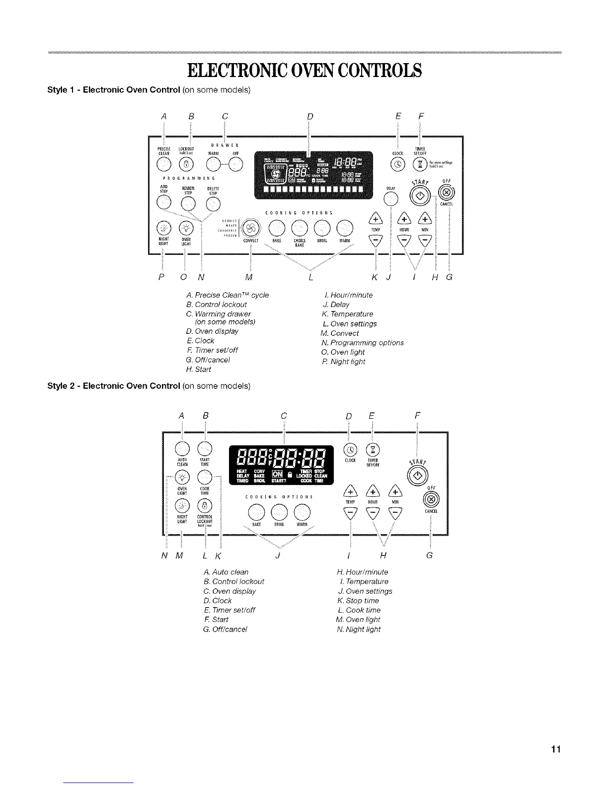 Style 1 - Electronic Oven Control (on some models)