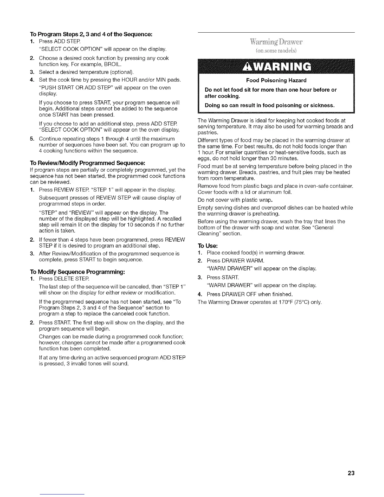 warming drawer. Breads, pastries, and fruit pies may be heated