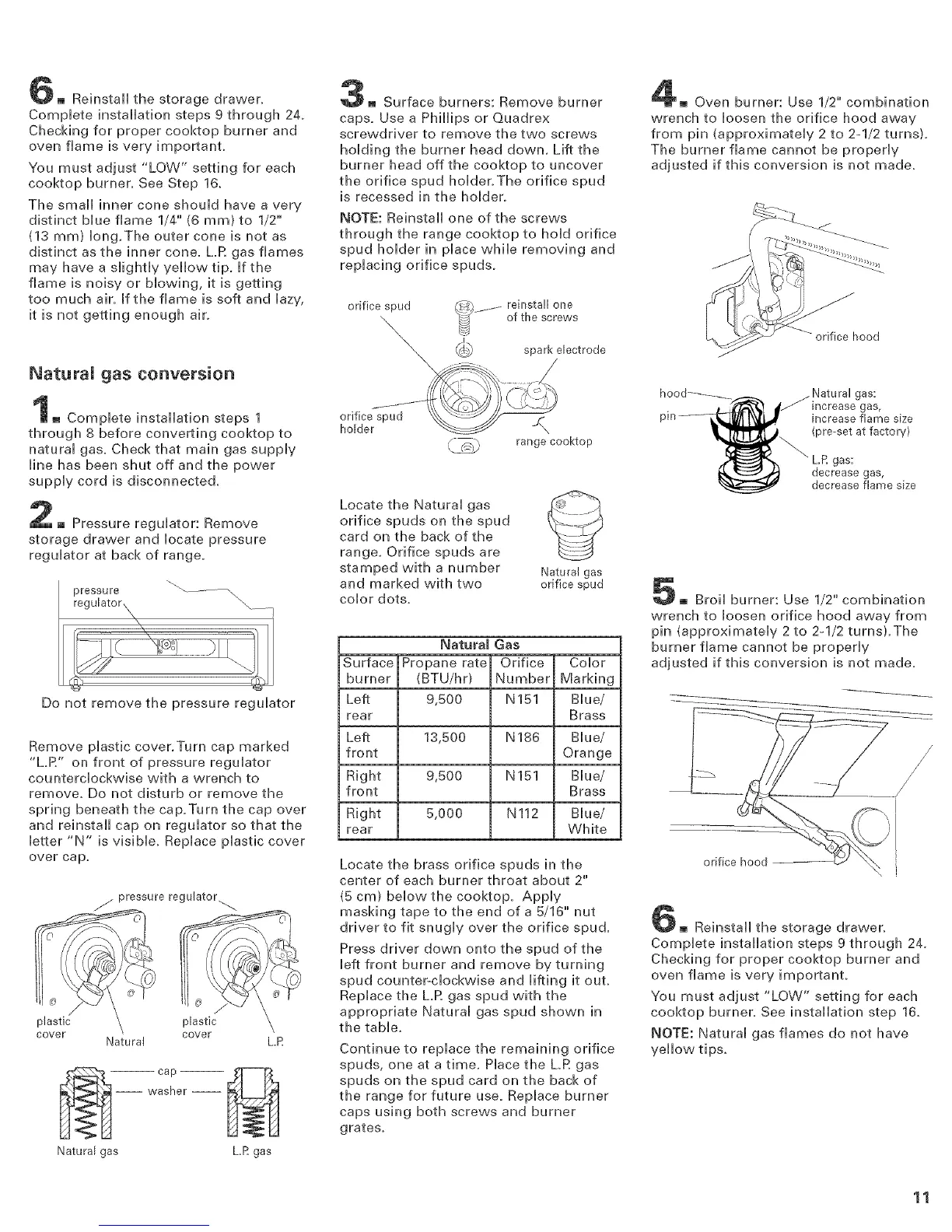 cooktop burner, See installation step l&