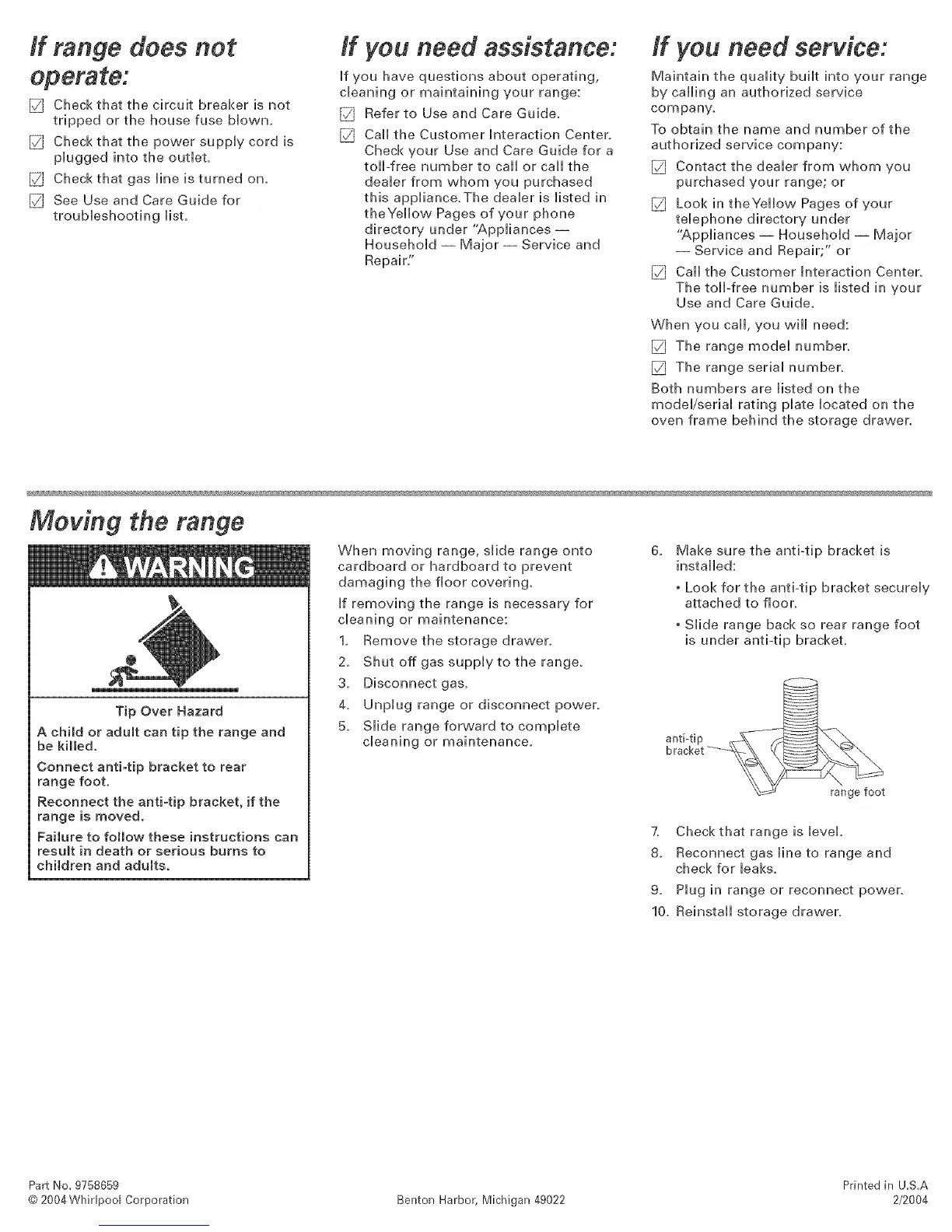 @ 2004Whirlpool Corporation Benton Harbor, Michigan 49022 2/2004
