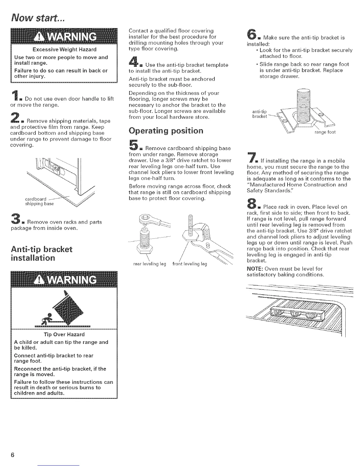 Anti-tip bracket must be anchored