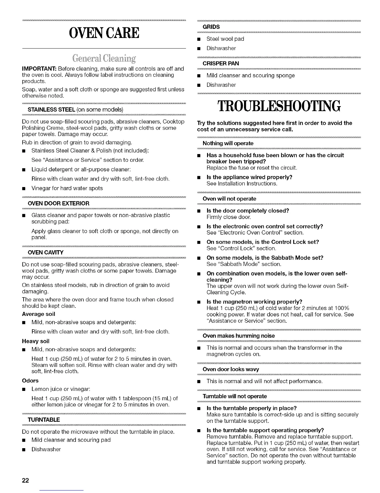 oven. If still not working, call for service. See "Assistance or