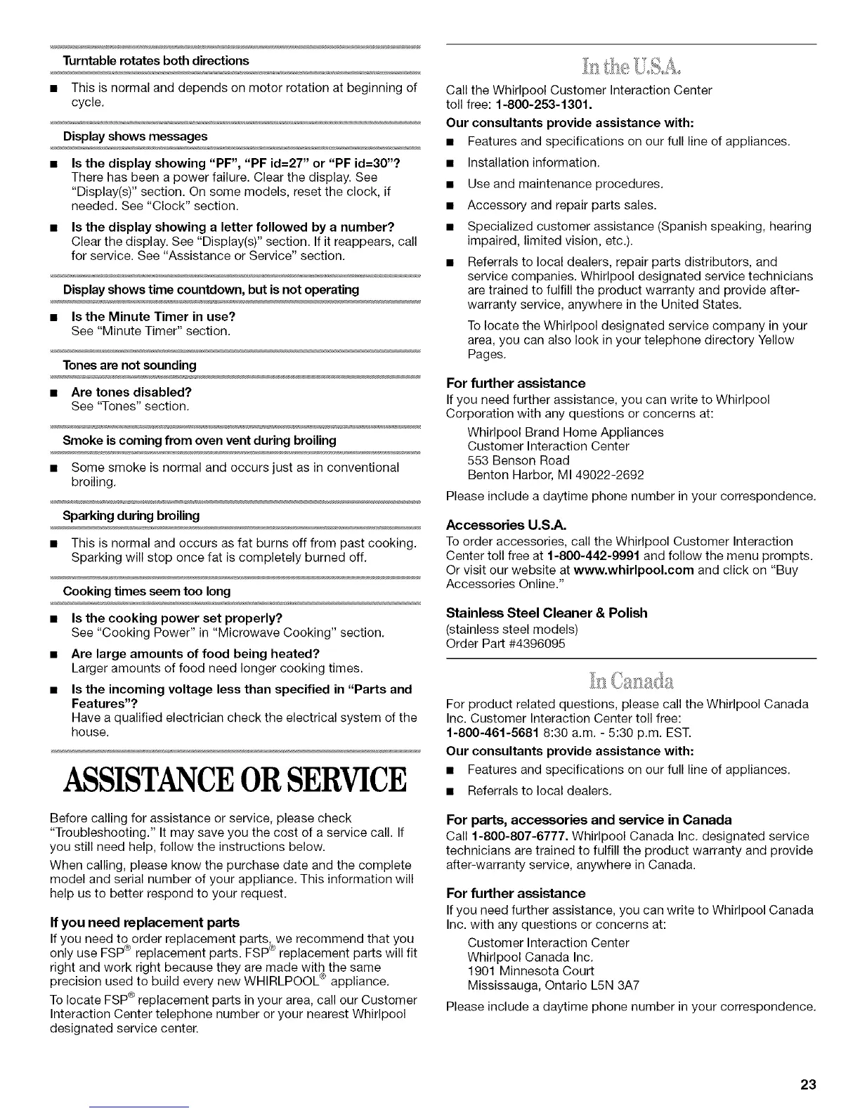 for service. See "Assistance or Service" section.