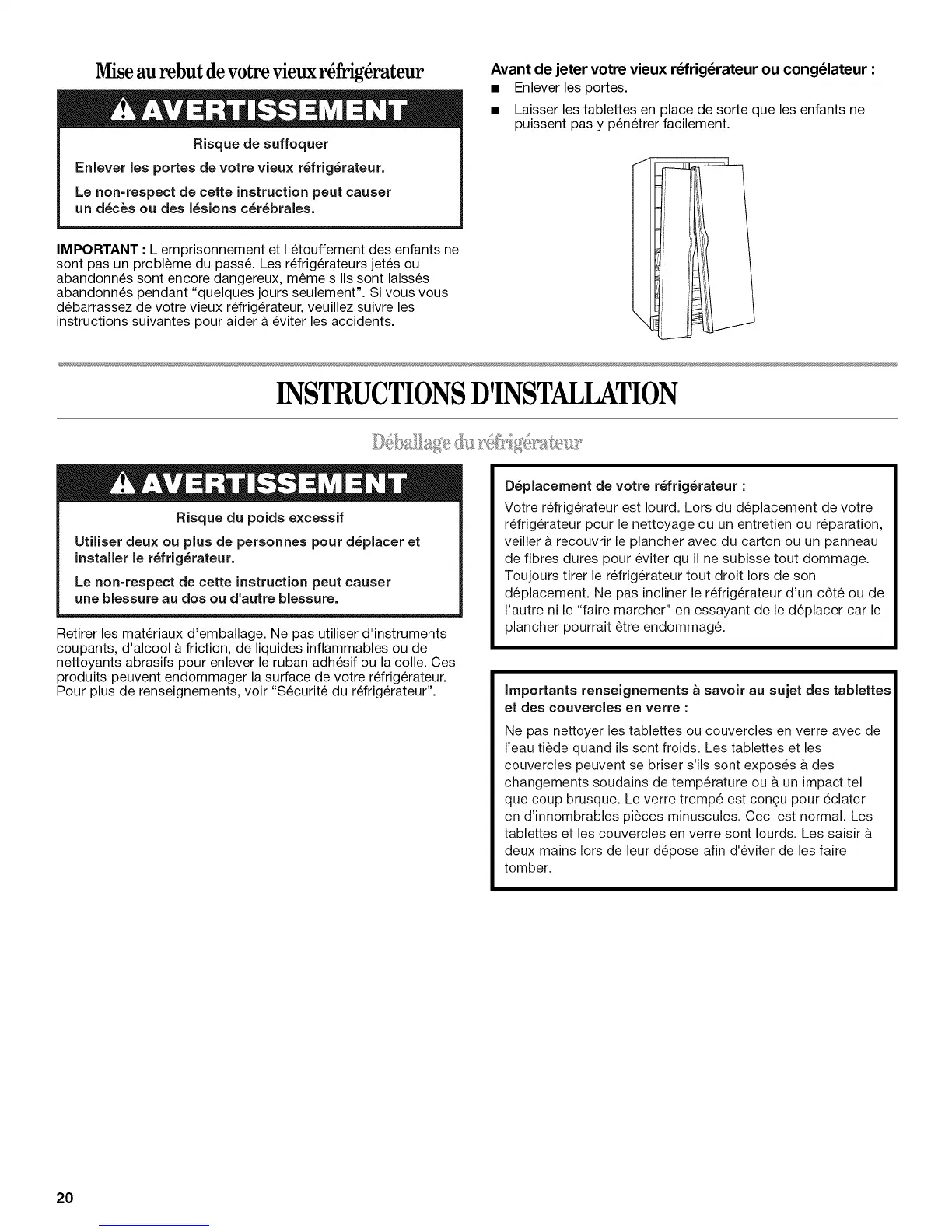 deplacement. Ne pas incliner le refrig6rateur d'un c6te ou de