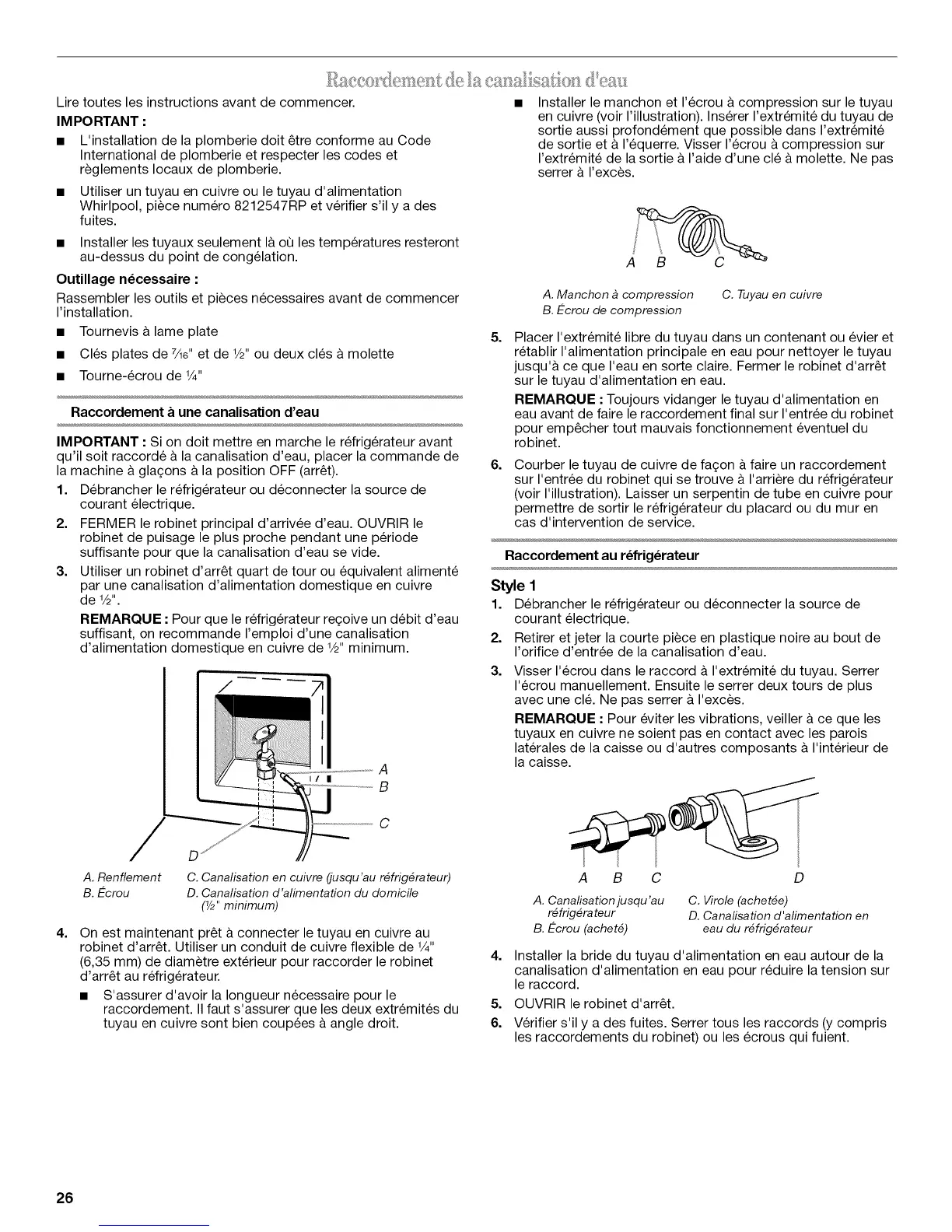 Lire toutes les instructions avant de commencer. • Installer le manchon et I'ecrou & compression sur le tuyau