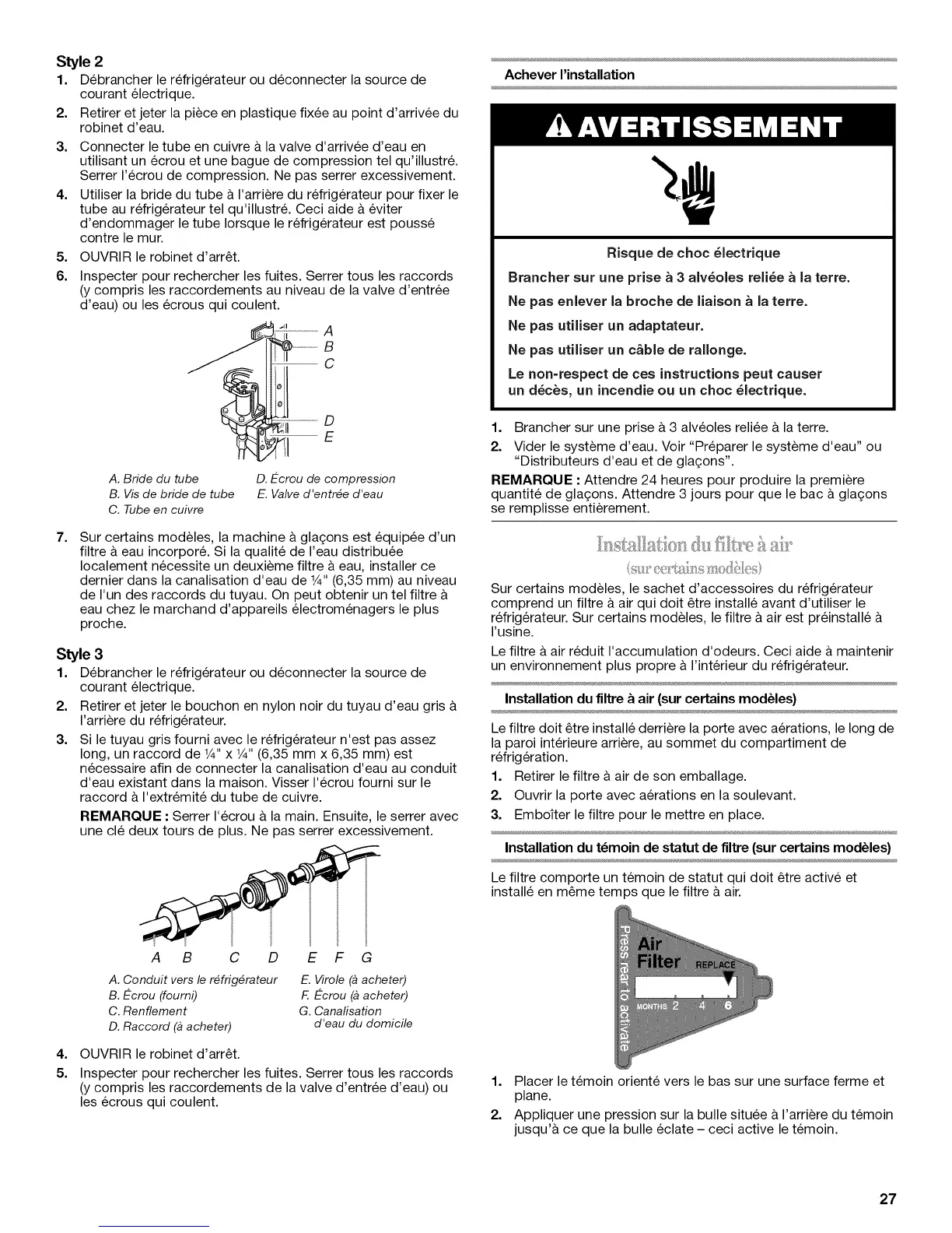 refrigerateur. Sur certains modeles, le filtre & air est preinstalle &