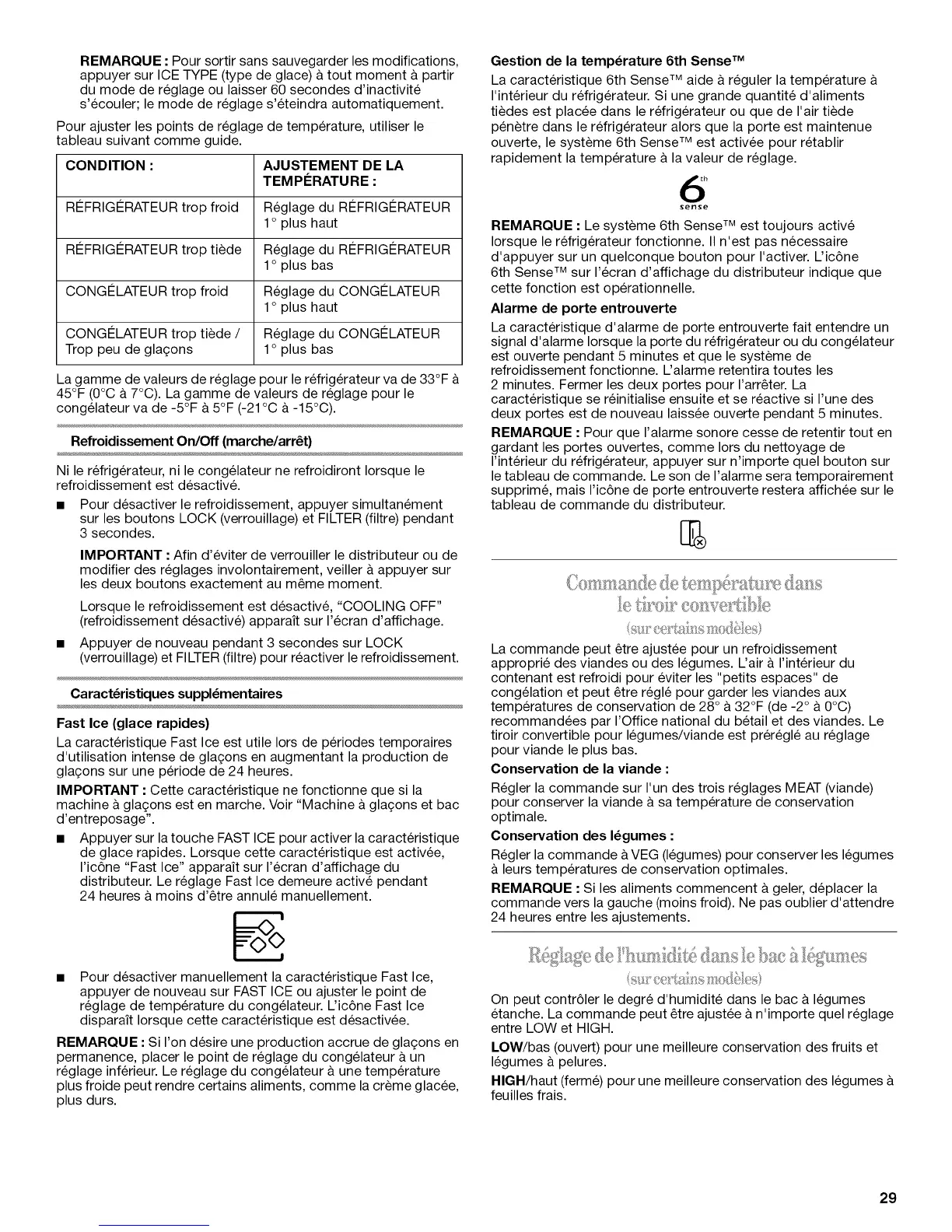 La caracteristique 6th Sense TM aide & reguler la temperature &