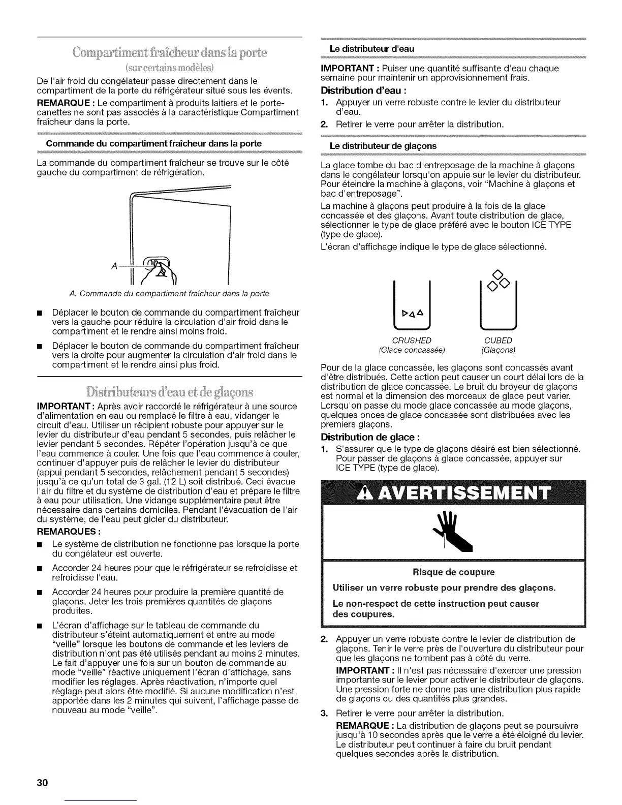 concassee et des glagons. Avant toute distribution de glace,