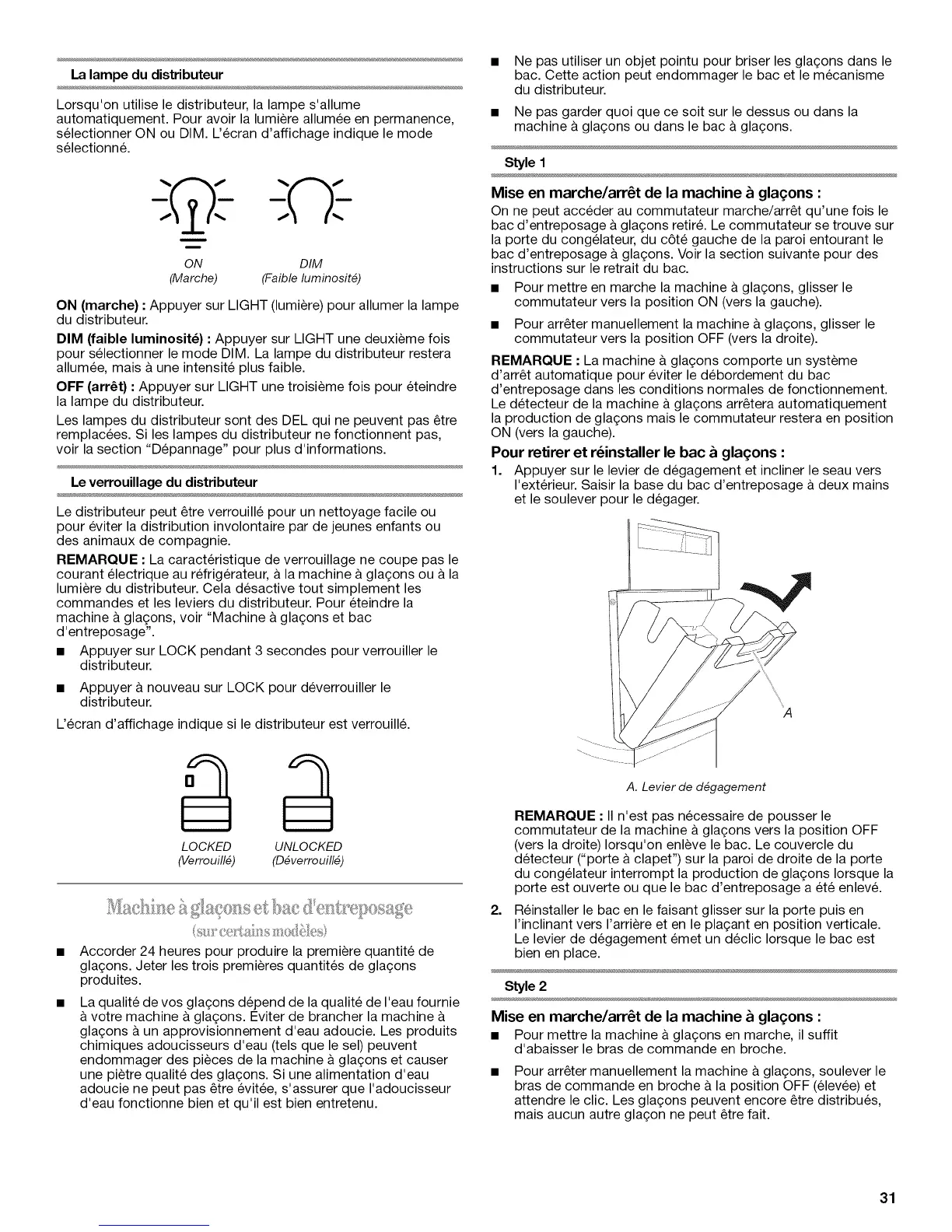 bac d'entreposage & gla£;ons. Voir la section suivante pour des