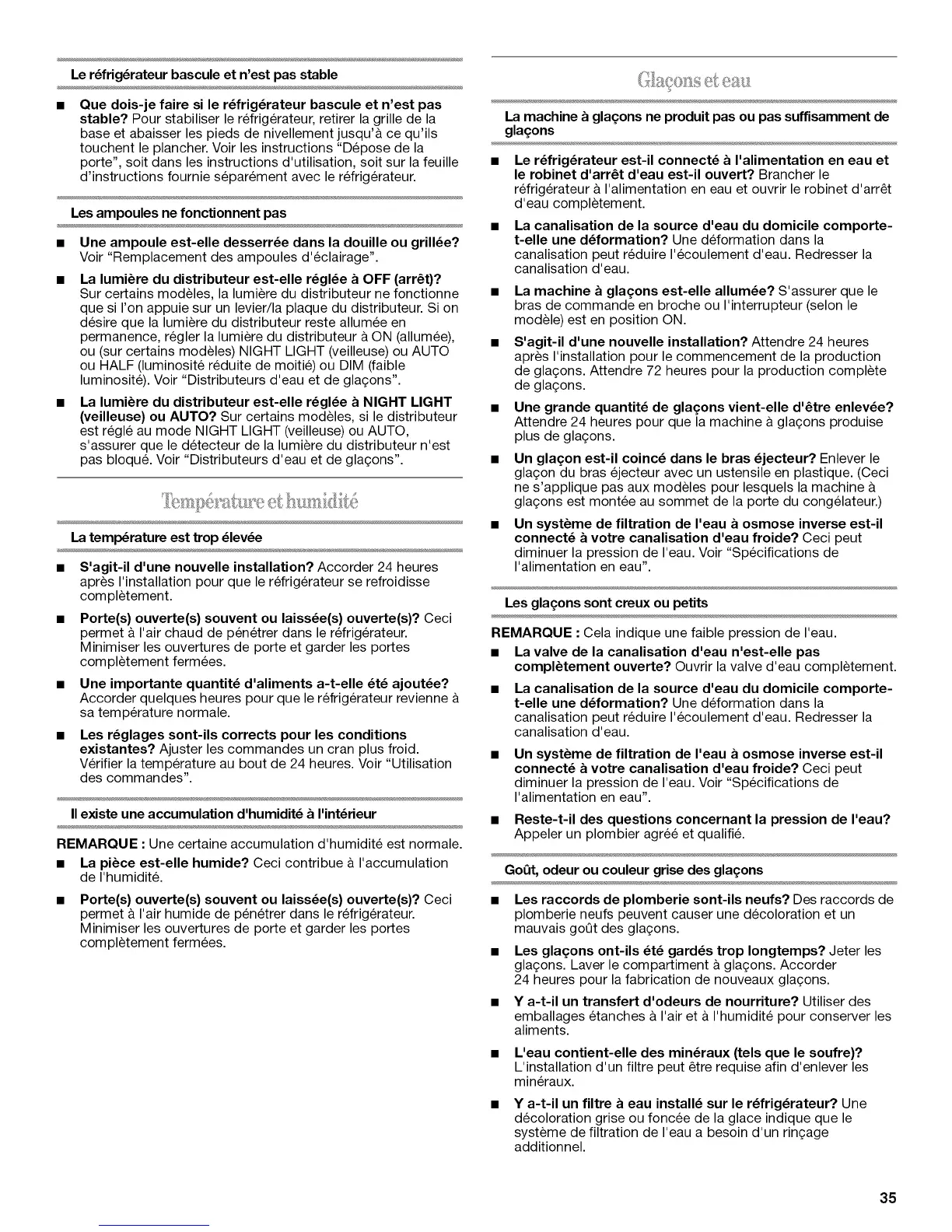 luminosite). Voir "Distributeurs d'eau et de gla£;ons".