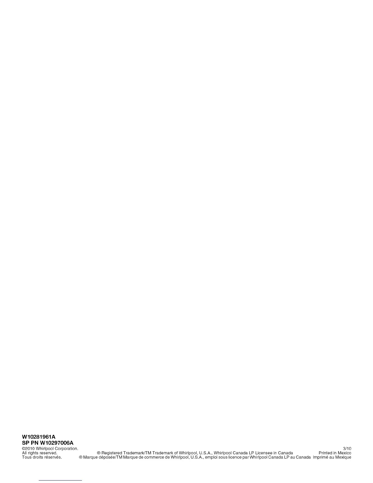 Tous droits reserves. ® Marque deposee/TM Marque de commerce de Whirlpool, U.S.A., emploi sous licence par Whirlpool Canada LP au Canada Imprime au Mexique