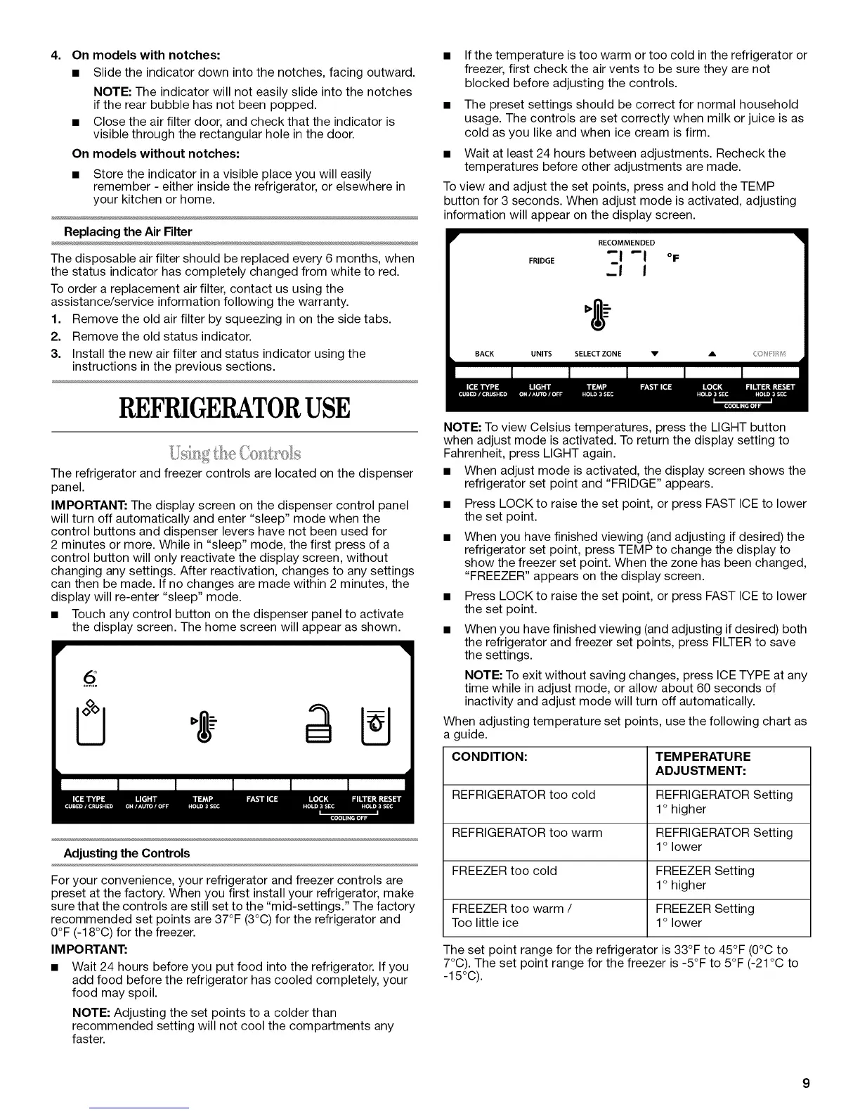 preset at the factory. When you first install your refrigerator, make