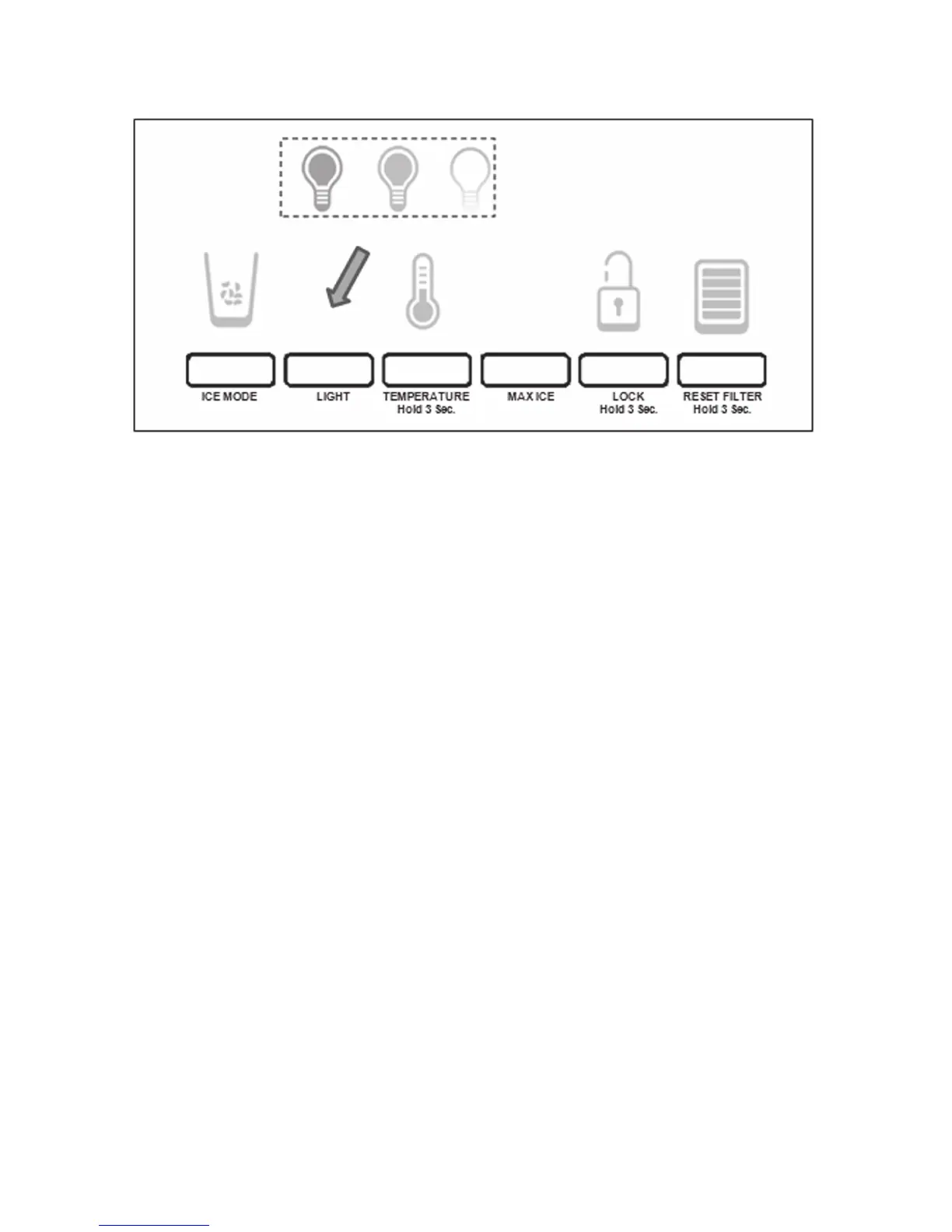 OFF: Press LIGHT a third time to turn the dispenser light off