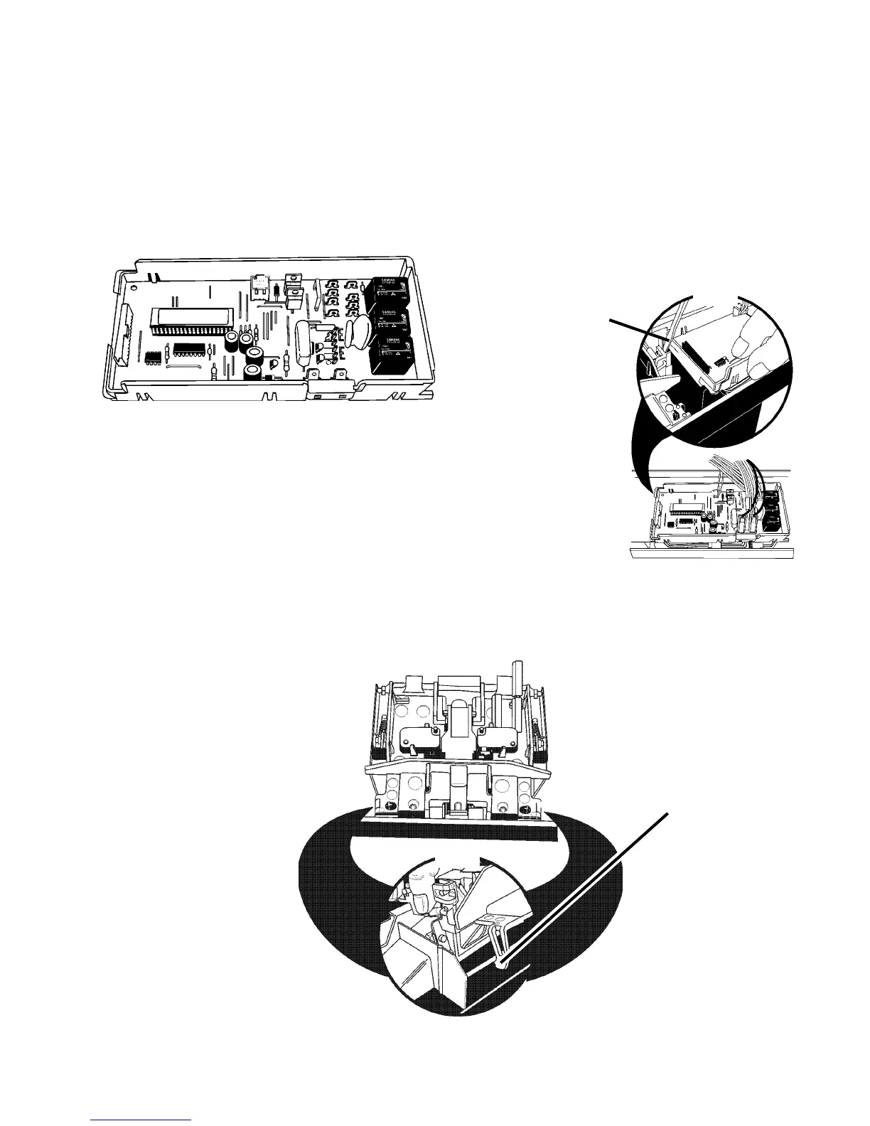 Release the tabs securing the door latch assembly to the control panel and lift the assembly out. (Fig.