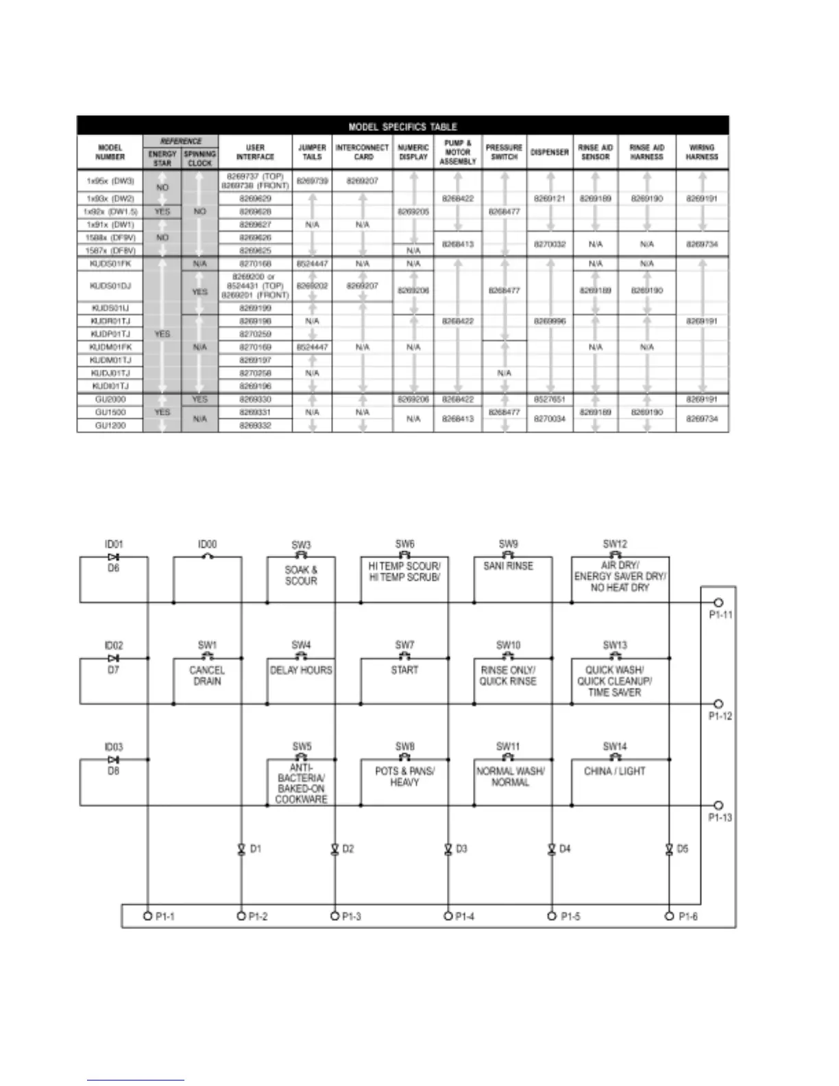 Whirlpool GU1200XT - Model Specific Service Parts Table; User Interface Switch Matrix