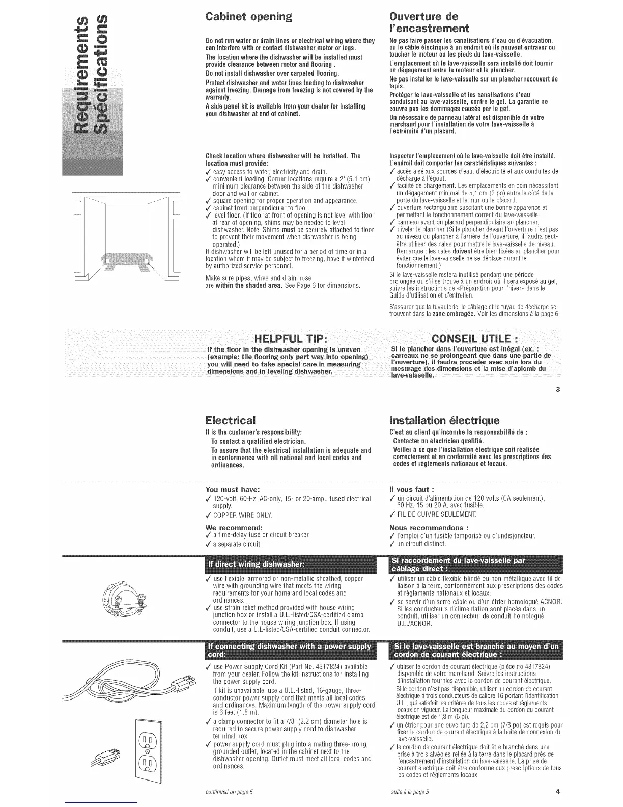 dishwasher opening. Outlet must meet all local codes and