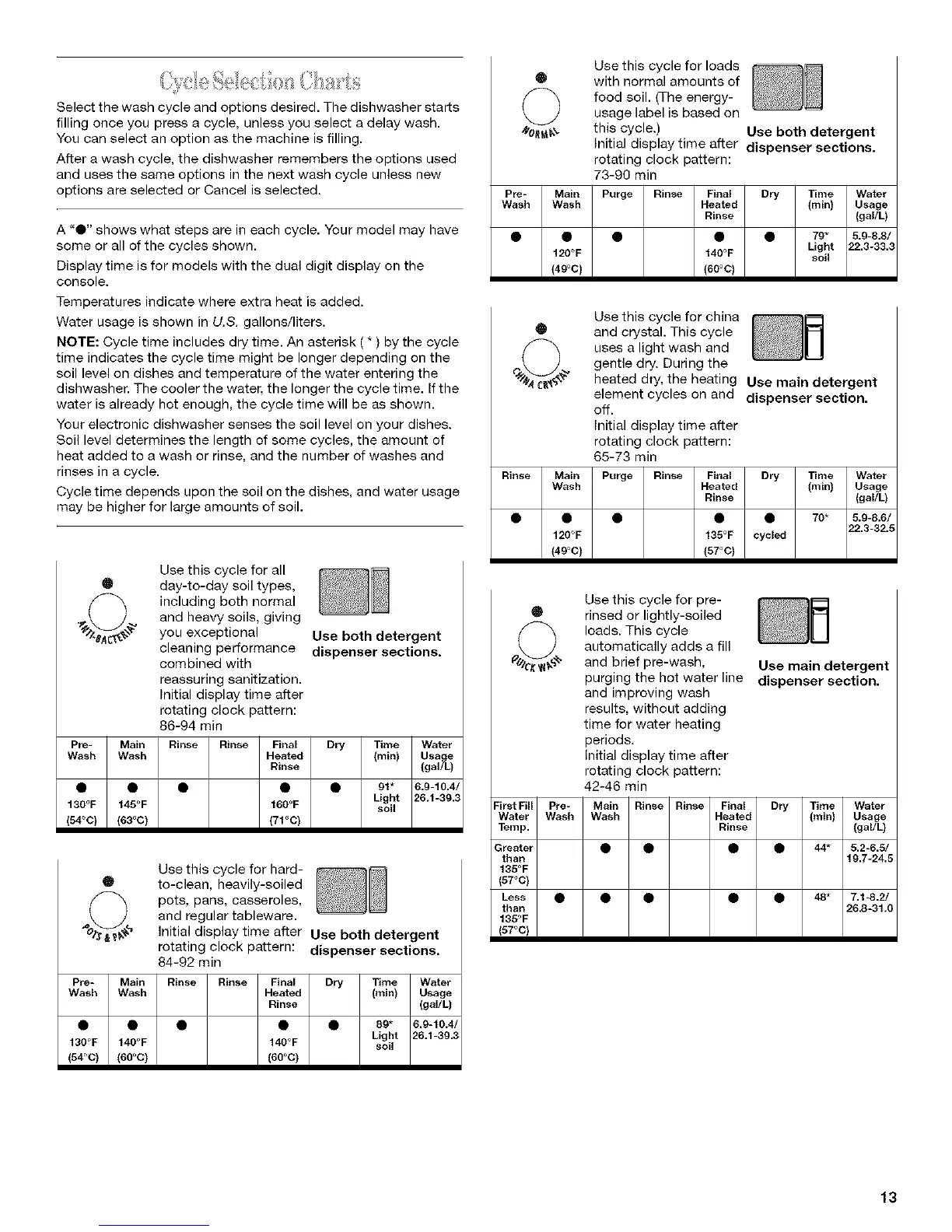 Water usage is shown in U.S. gallons/liters.