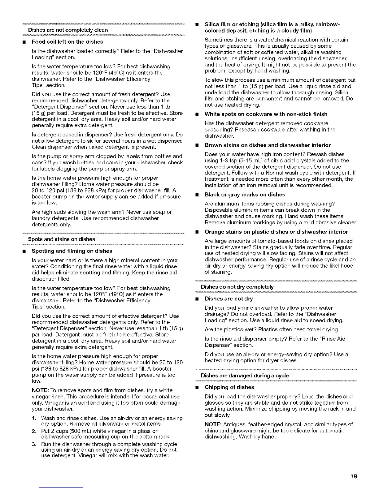 NOTE: To remove spots and film from dishes, try a white
