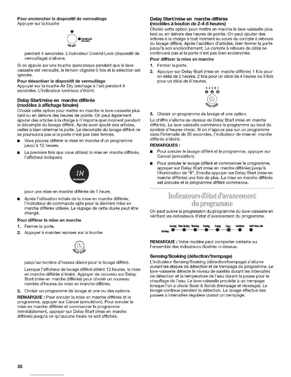 Lorsque I'afficheur de lavage differ6 atteint 12 heures, la raise