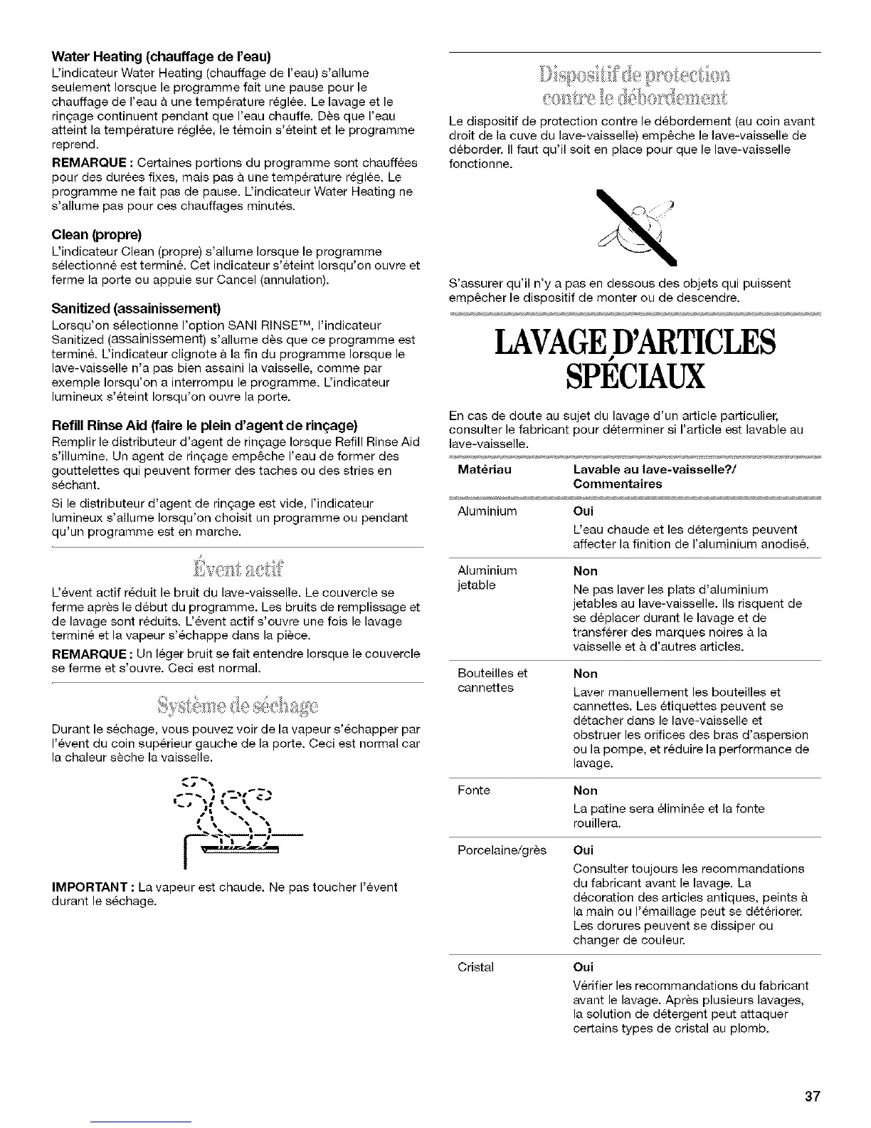 IMPORTANT : La vapeur est chaude. Ne pas toucher I'event