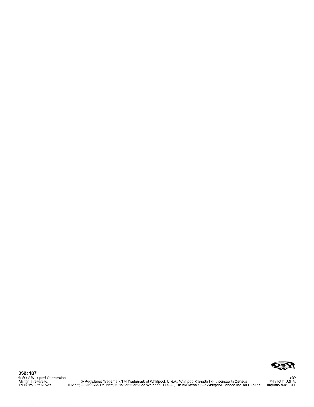 © 2002 Whirlpool Corporation. 3/02