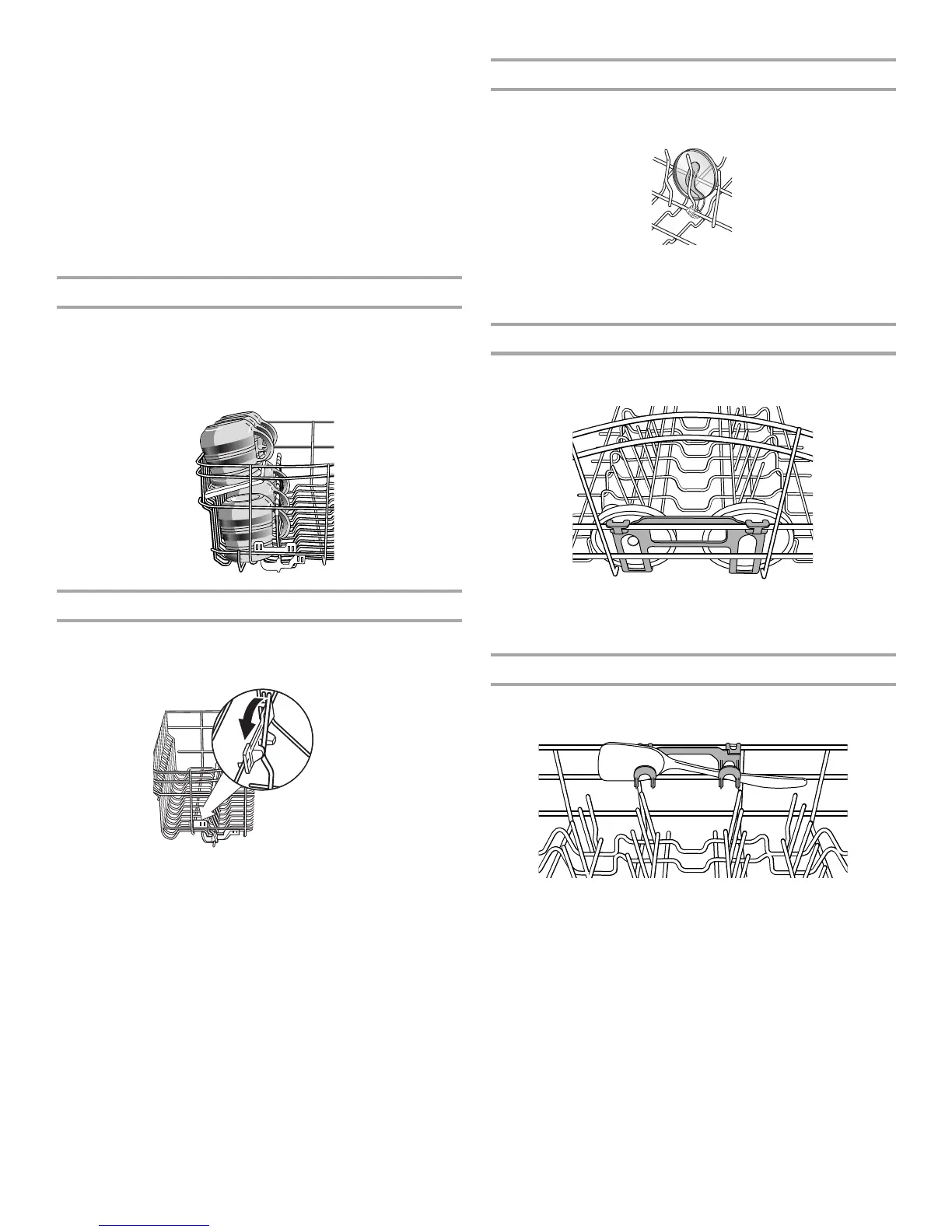■ Place cups and glasses in the rows between tines. Placing