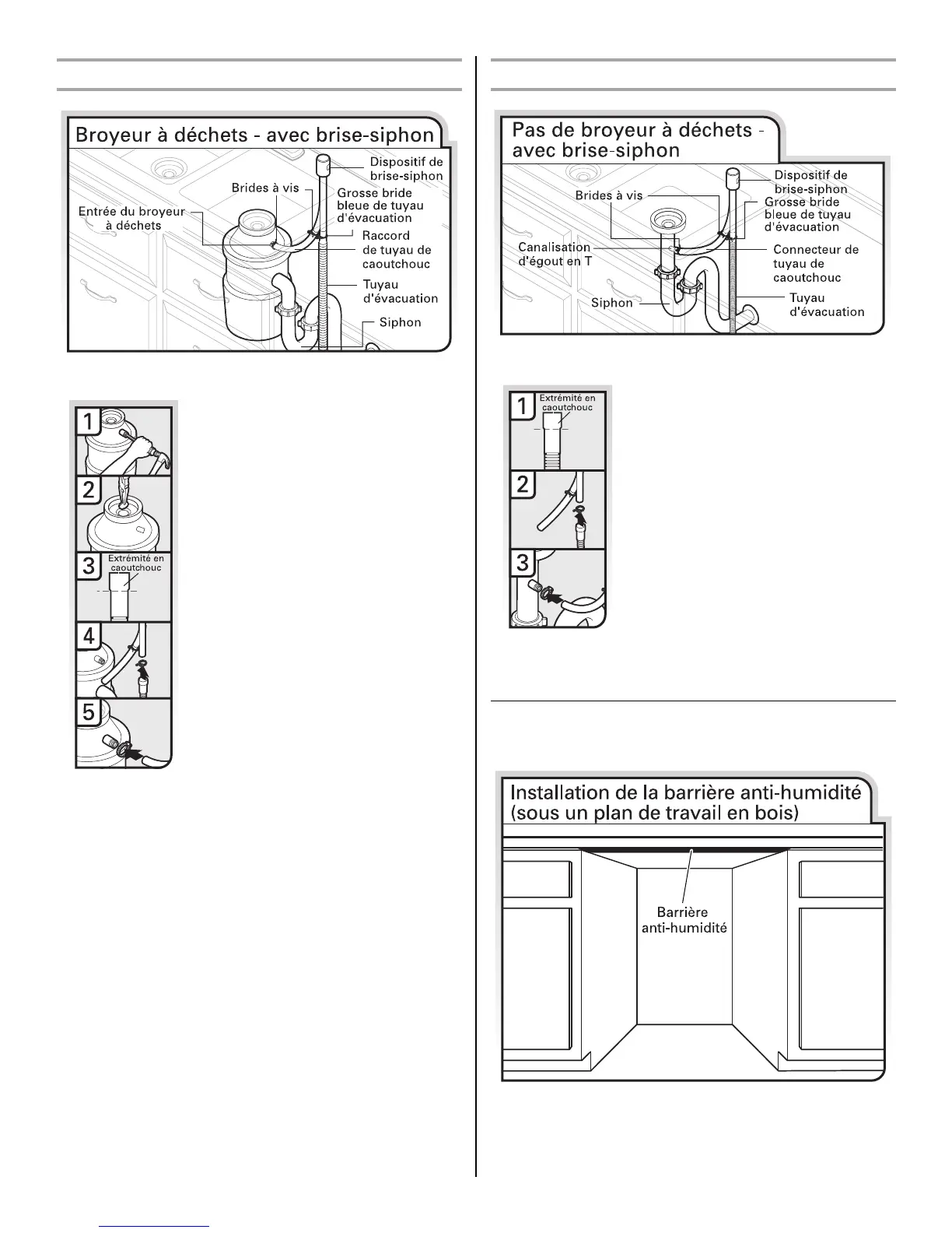 Option C - broyeur à déchets - avec brise-siphon Option D - pas de broyeur à déchets – avec brise-siphon