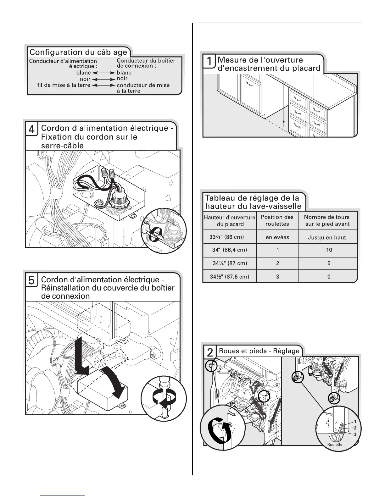 hauteur du lave-vaisselle” pour la position des roulettes et le
