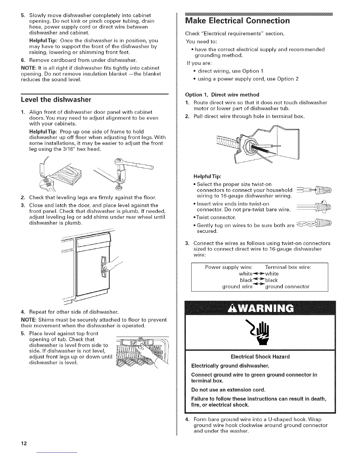 NOTE: It is all right if dishwasher fits tightly into cabinet