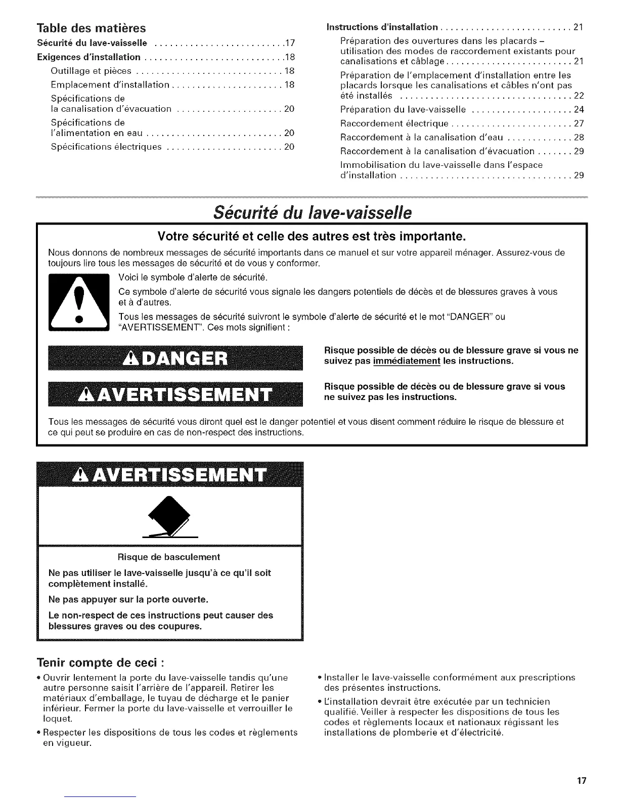 S@curite du lave-vaisselle .......................... 17