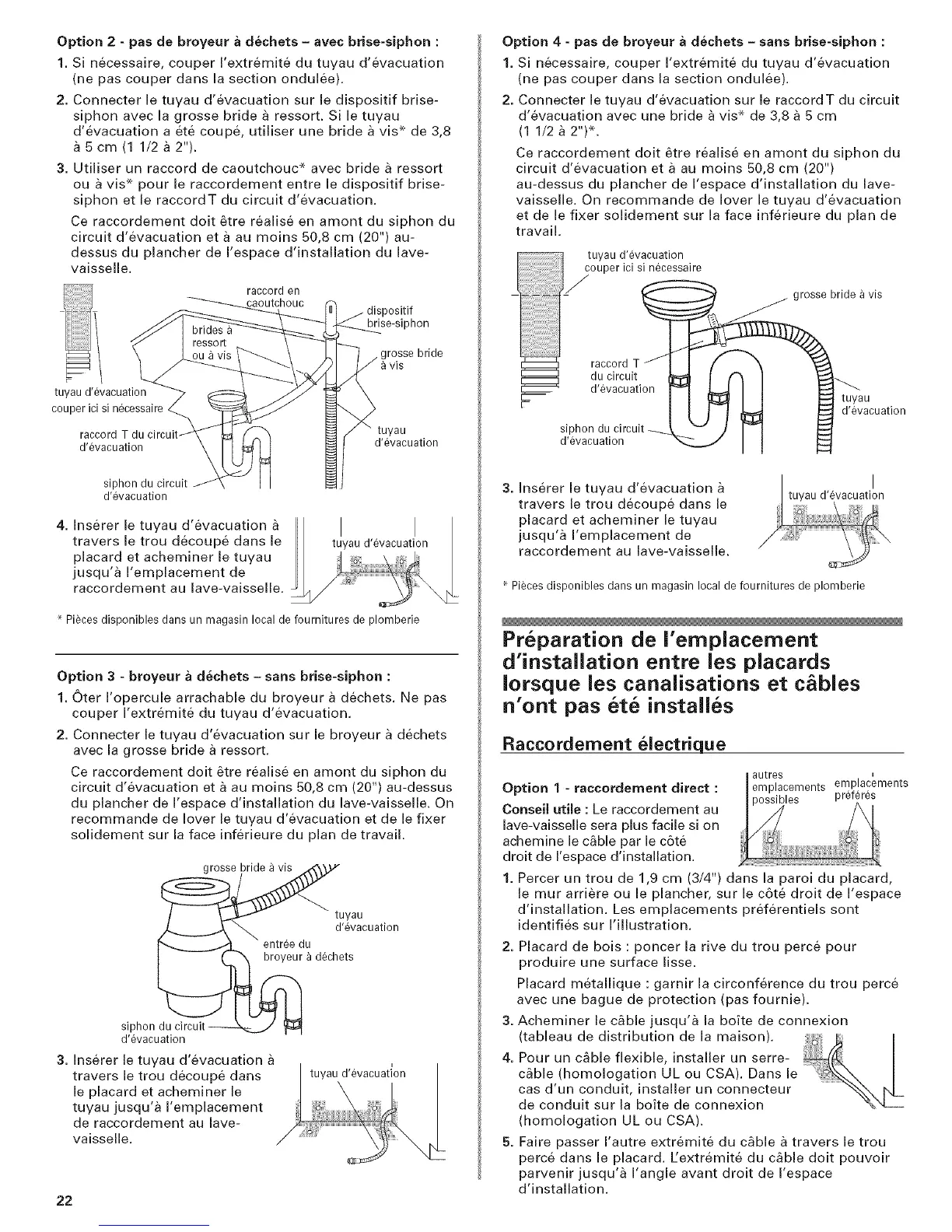 circuit d'evacuation et & au moins 50,8 cm (20") au-dessus