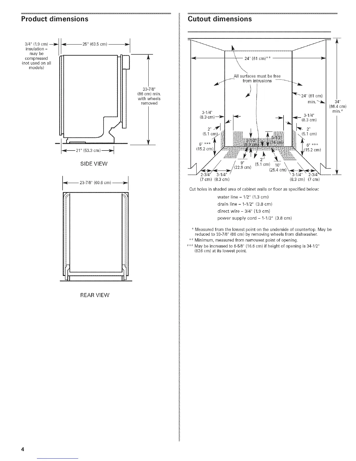 reduced to 33-7/8" (86 cm) by removing wheels from dishwasher.