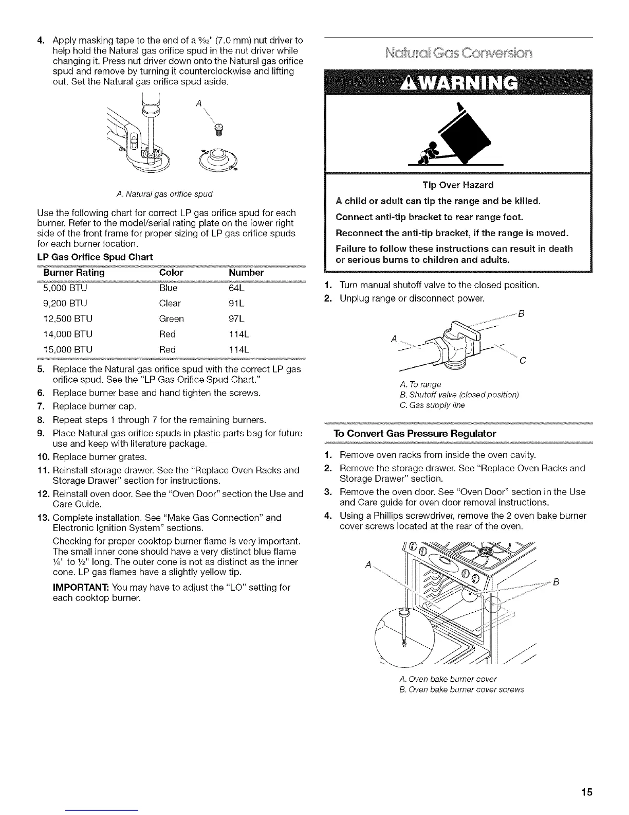 orifice spud. See the "LP Gas Orifice Spud Chart."