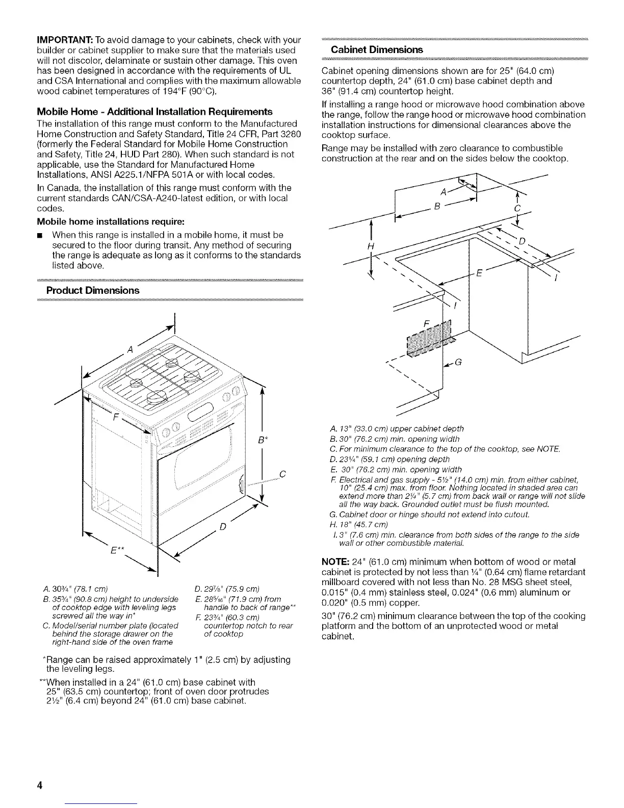 • When this range is installed in a mobile home, it must be