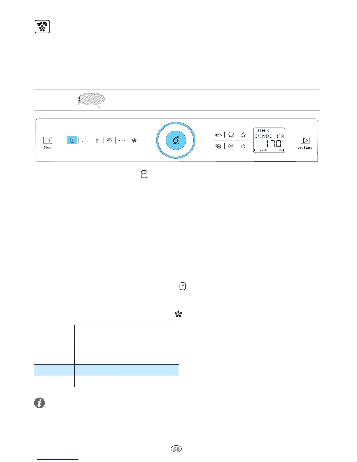 Turn the Rotating Knob to see the “COMBI FORCED AIR + MICROWAVE-USE LOW RACK” and press