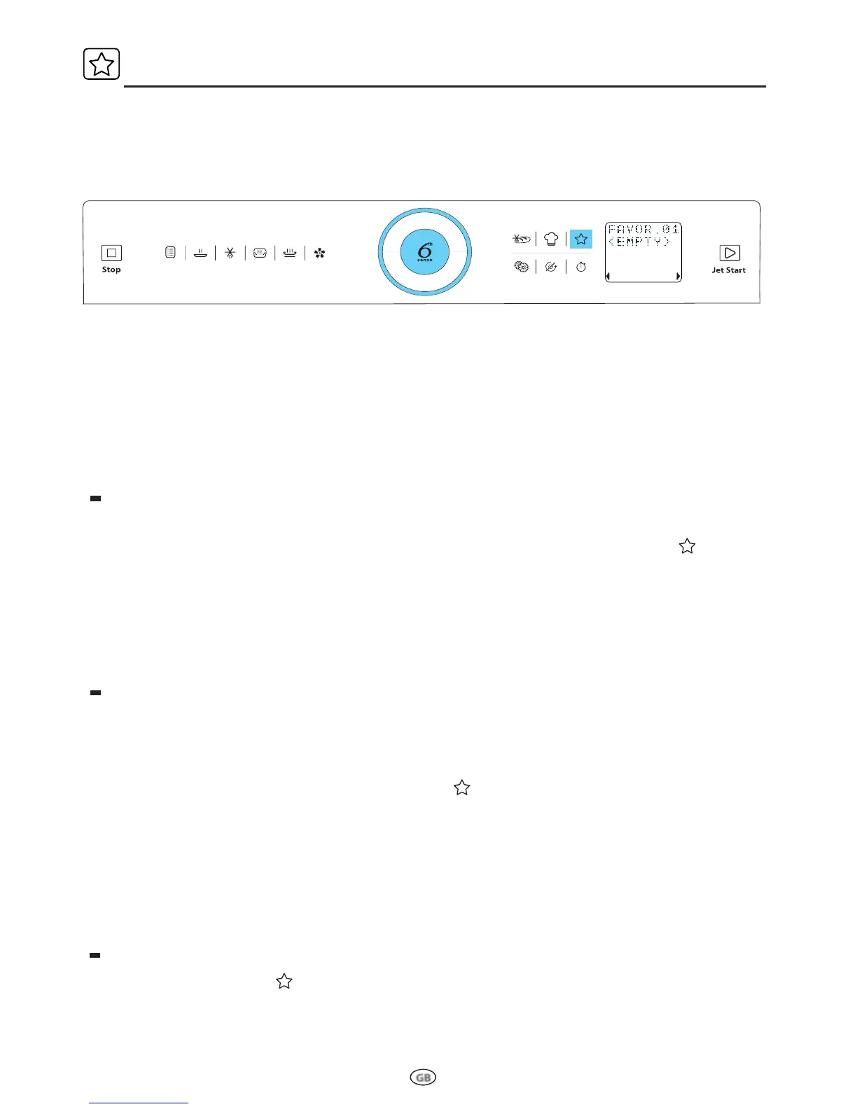 if the Favourite consists of a sequence of cycles, press the Jet Start button to start each of the phases in the